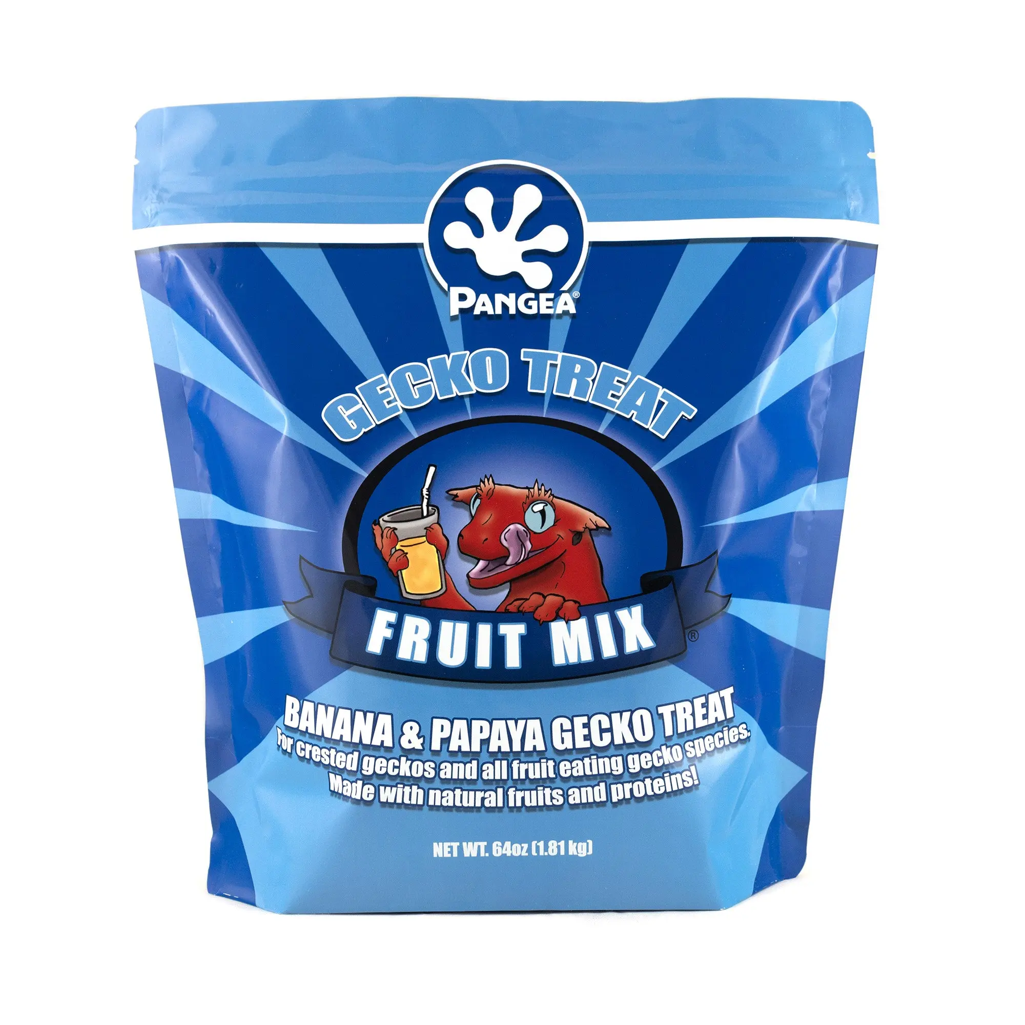 Pangea Fruit Mix Gecko Treat™ is our original trademarked formula and is the foundation of our award-winning complete gecko diets! Pangea Treat is a low-protein version of our complete diet that entices picky eaters. It can be fed as the fruit portion of your gecko's diet along with at least one or two insect feedings per week.