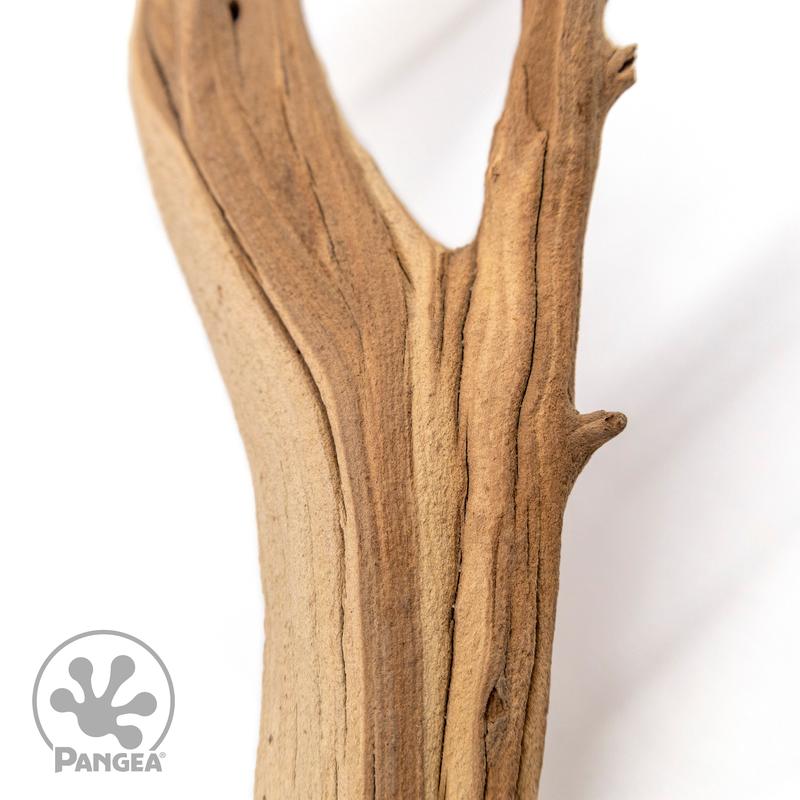 The beautiful flowing colors, sturdy structure, and durability of Pangea Ghost Wood Branches make them an excellent choice for any terrarium, vivarium, or aquarium. This natural product comes from the Manzanita shrub but differs from a more commonly seen product of Manzanita branches that are extremely thin. The Pangea Ghost Wood branches come in many shapes, and sizes where branches may be forked and some have several tones of color that flow through the curves of the branches.
