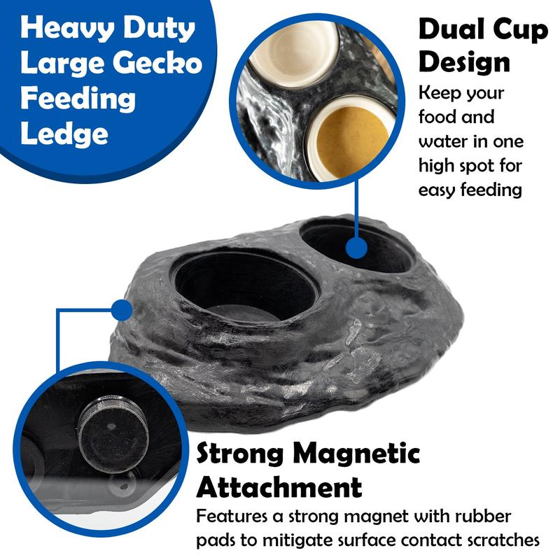 If you want the best gecko feeding ledge available, this is it! This mushroom style magnetic feeder rock ledge makes feeding your geckos easy! Geckos prefer to eat at elevated heights and this puts their food right where they want it! It uses high strength magnets both inside the ledge and attached to the outside of your terrarium. The ultra high strength magnets secure the ledge to just about any type of enclosure. Made from ABS plastic, you can simply wipe away any mess, even dried on gecko diet!