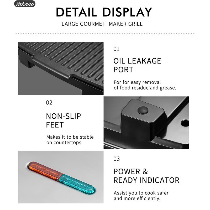 Β·Non-Stick Coating Plate - Enjoy hassle-free cooking and cleaning with the non-stick coating plate of our panini press grill. No more stubborn food residue or sticky messes!