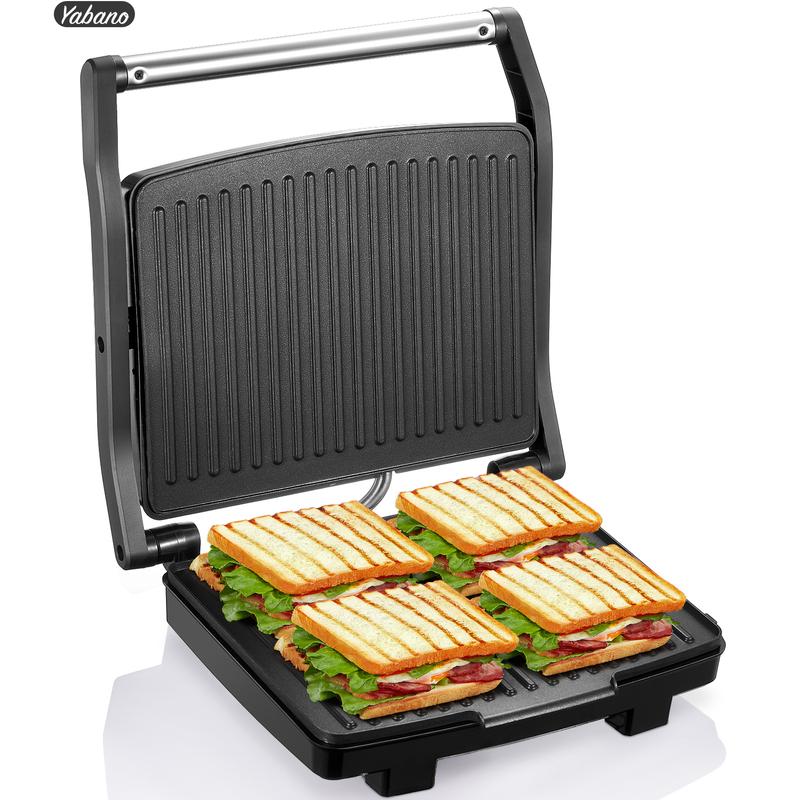 Yabano Panini Press Grill, Gourmet Sandwich Maker, Electric Indoor Grill with Non-Stick Cooking Plate and Removable Drip Tray, Easy to Clean, Stainless Steel shaq branded panini press