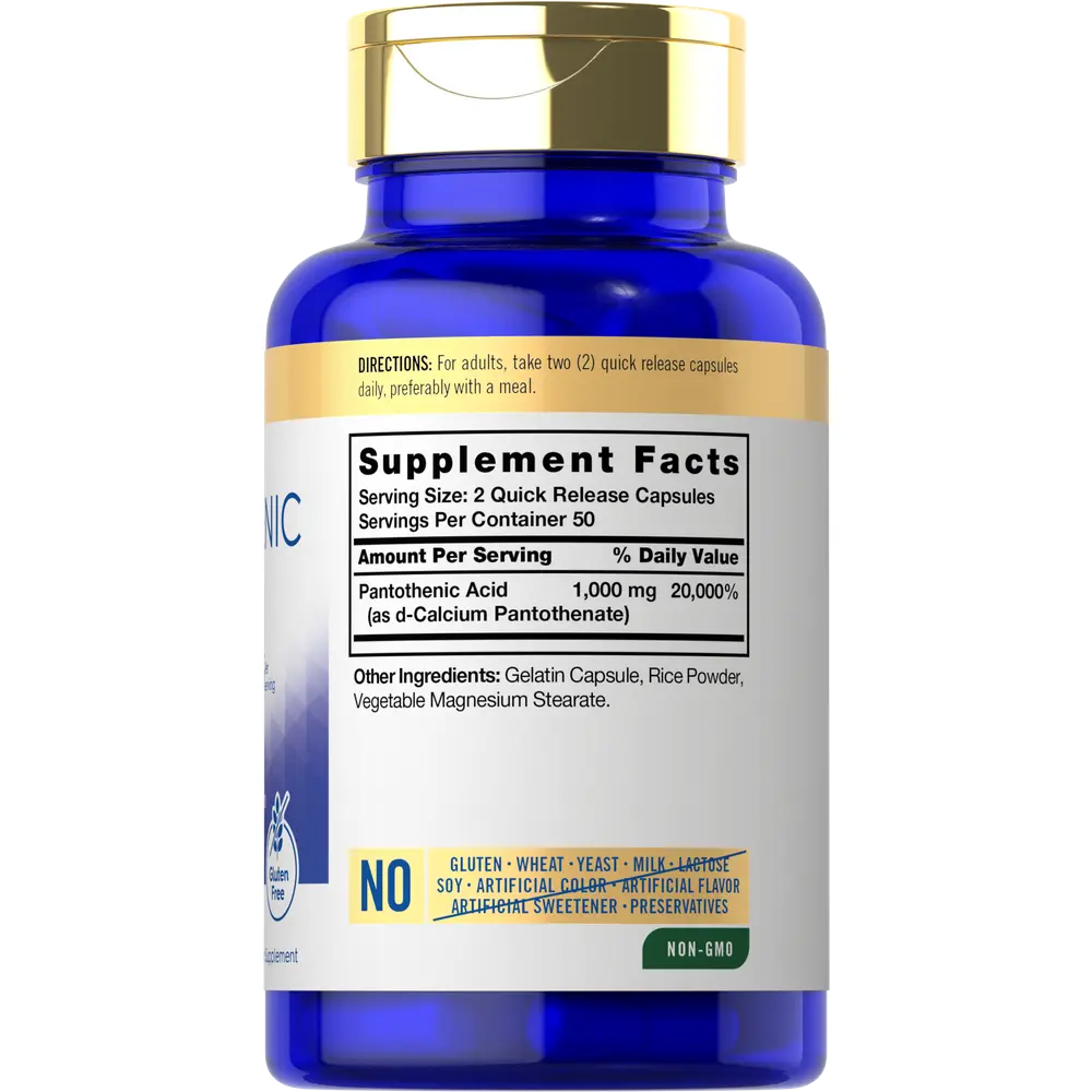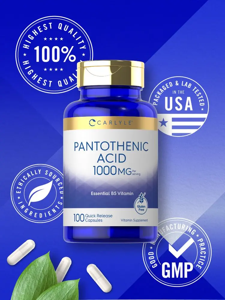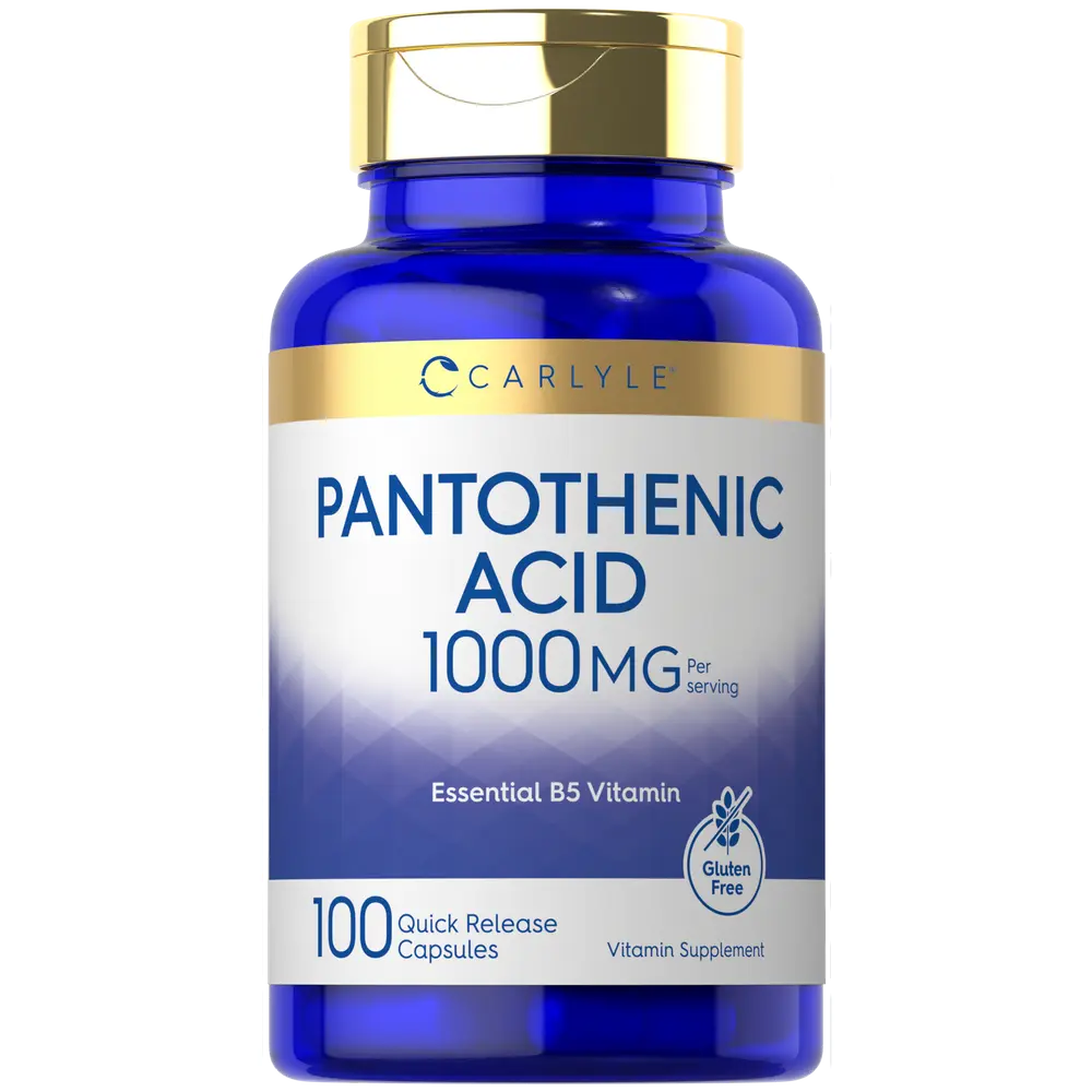 Keep your goals on track now with Carlyle Pantothenic Acid! This high potency supplement delivers 1,000 mg per serving of this essential vitamin B5. Quick release capsules are non-GMO and gluten free, making it a popular supplement of choice for both men and women!