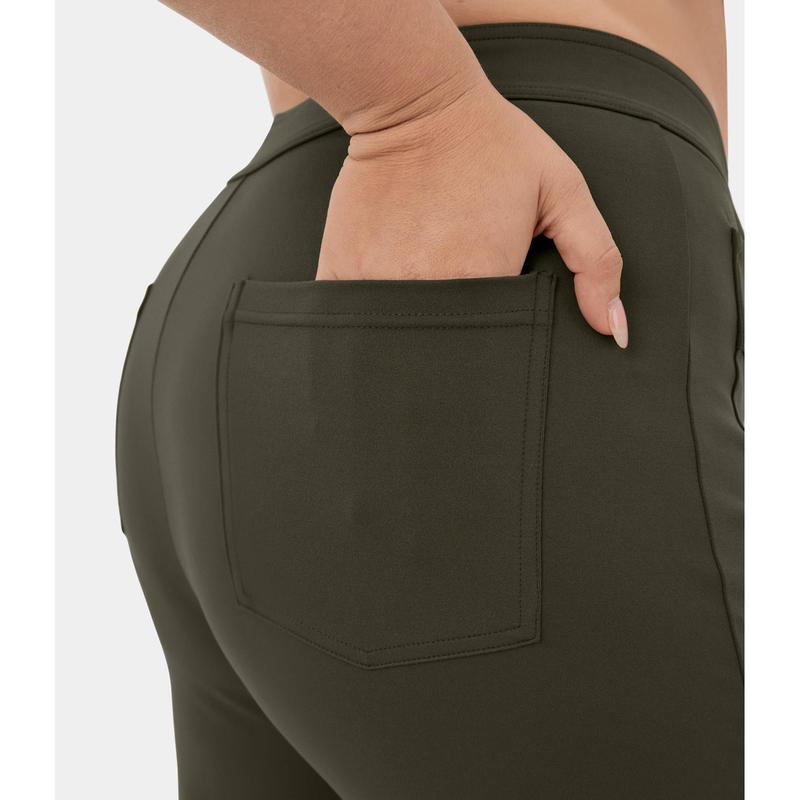 Fabric is very slippery, waist is very high, too long for my 5’2” height. They look nothing like a dress pants, very much look like yoga pants. Not worth the price.