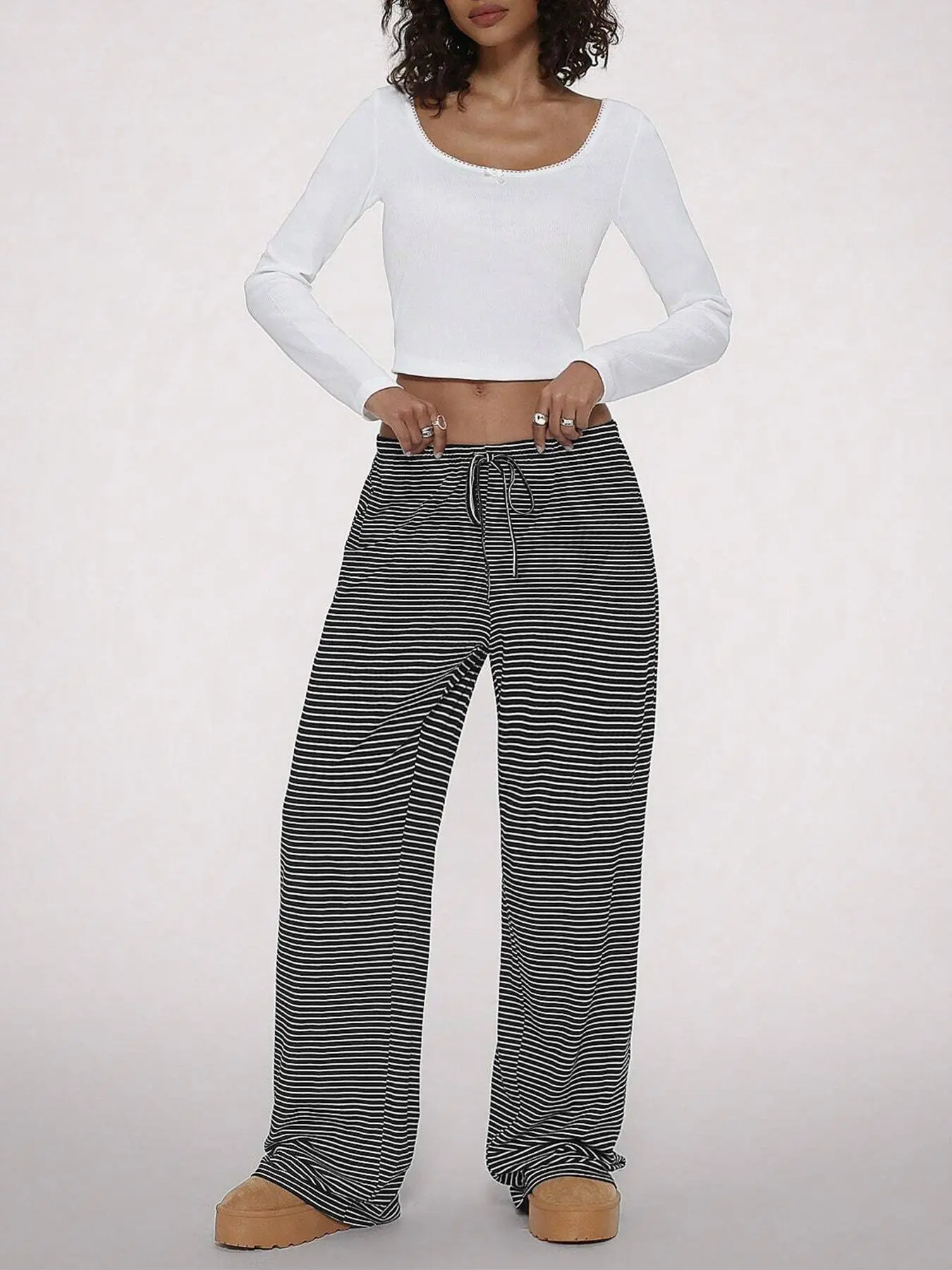 Women's Striped Print Drawstring Waist Pants, Casual Comfy Trousers for Daily Wear, Ladies Bottoms for Fall