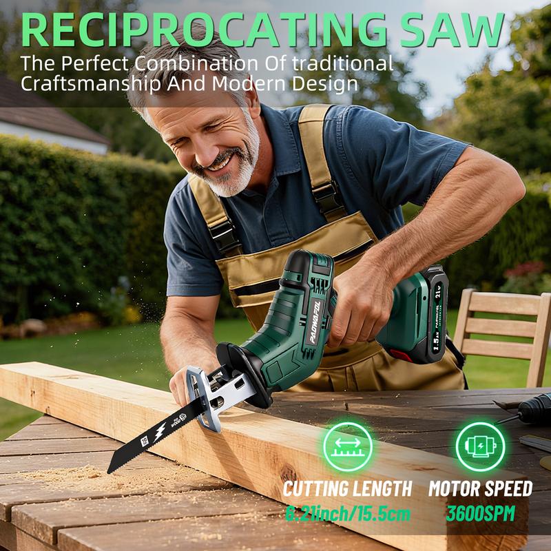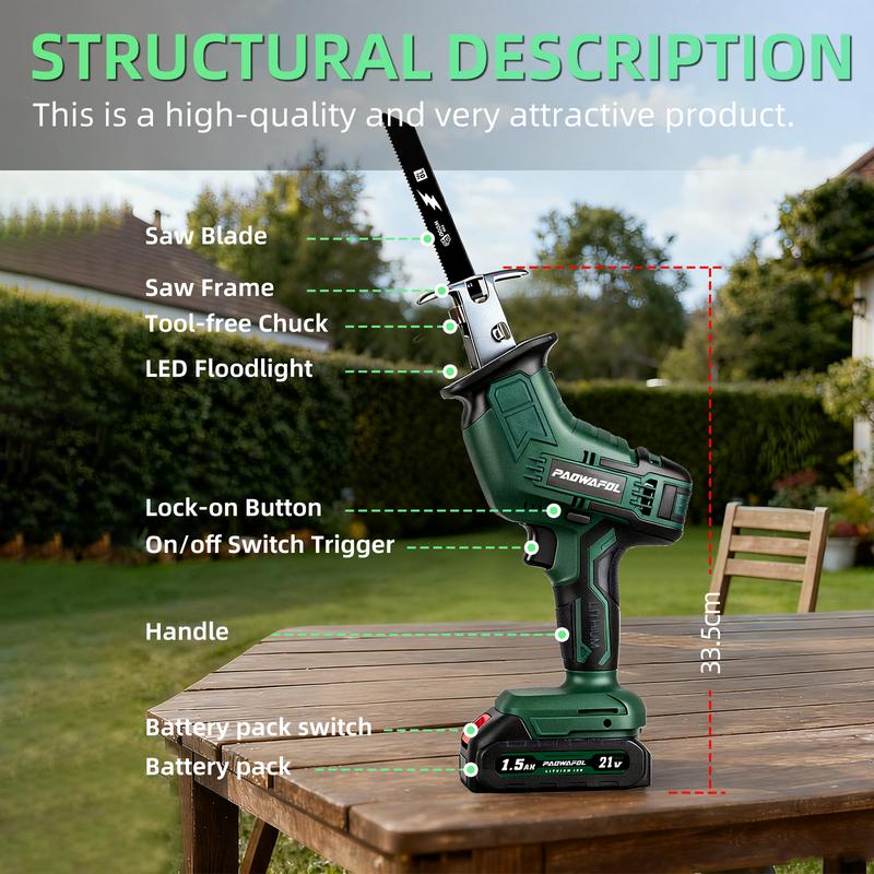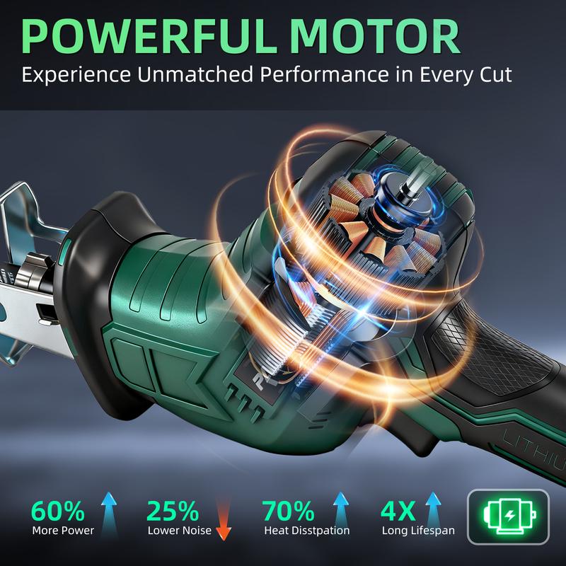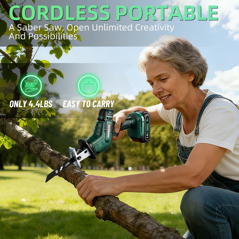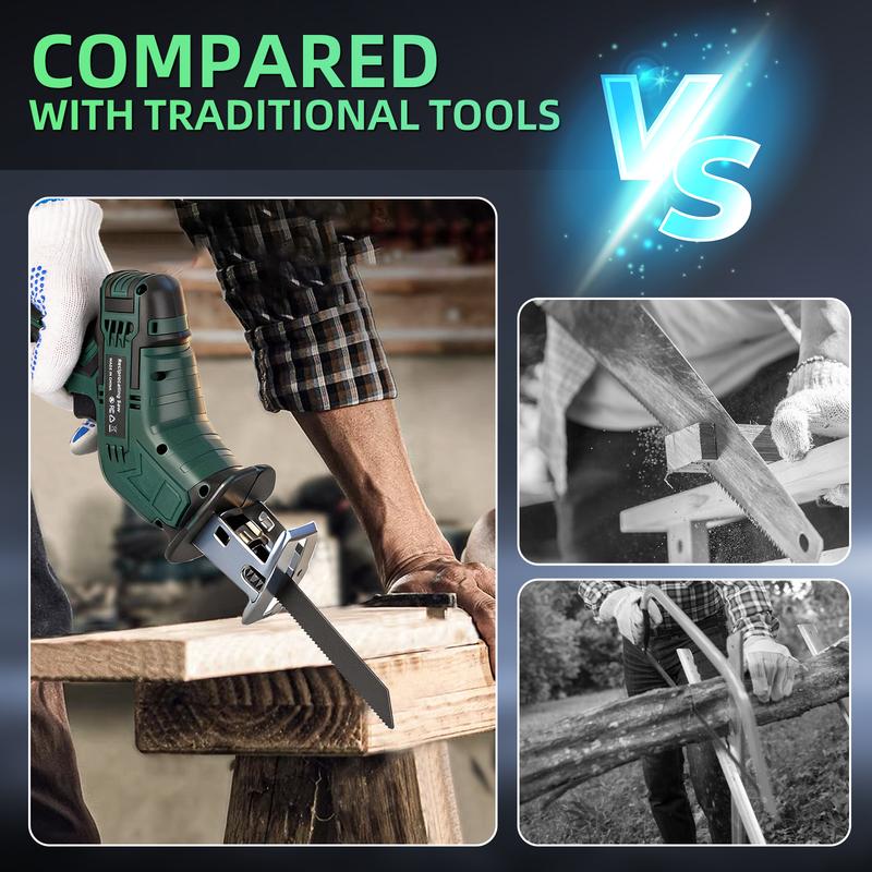 The battery reciprocating capable of cutting wood, pipes, trees, plastics, metal, and any other items. making it ideal for tackling various materials with ease