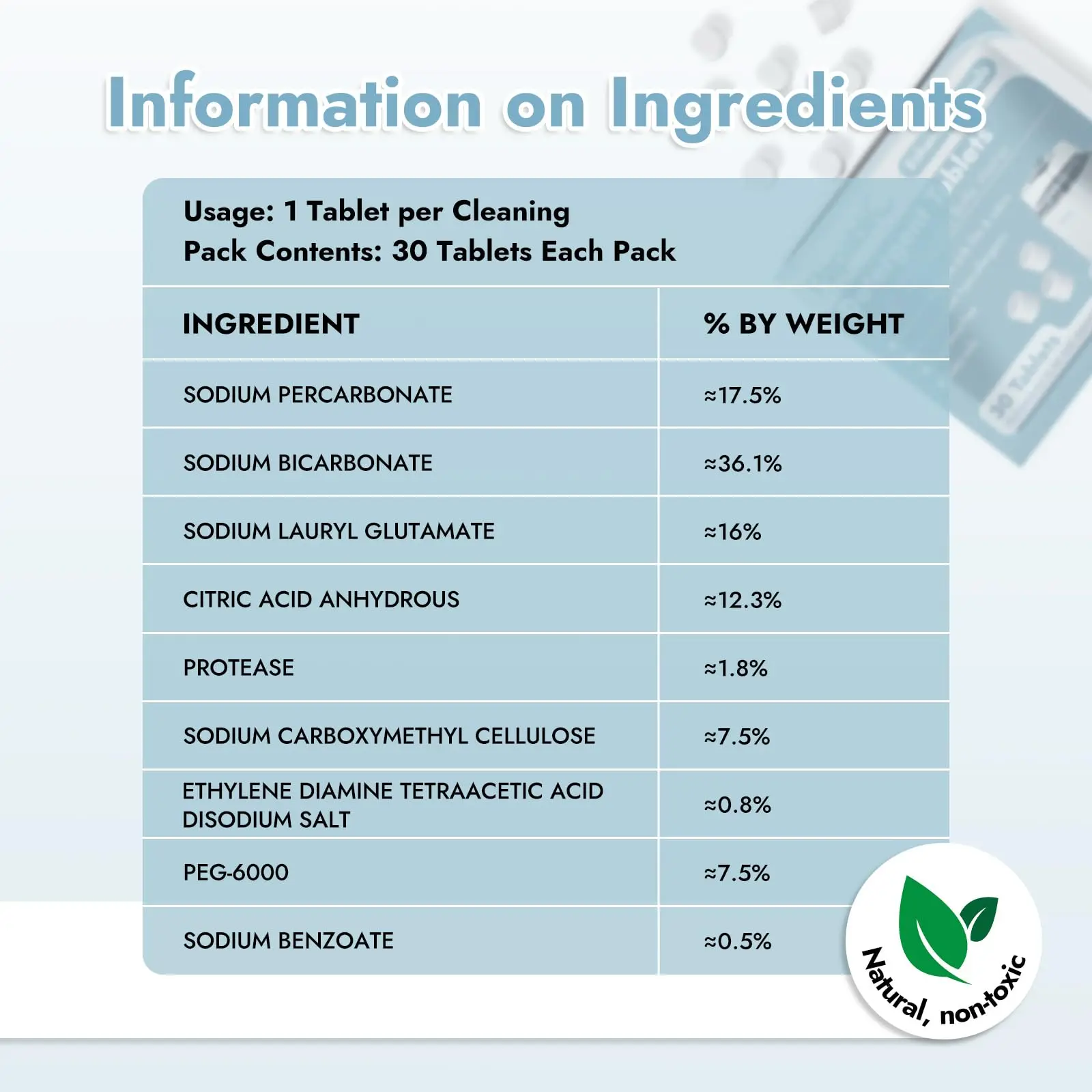 One tablet handles it all. Just drop it in water and let it dissolve.