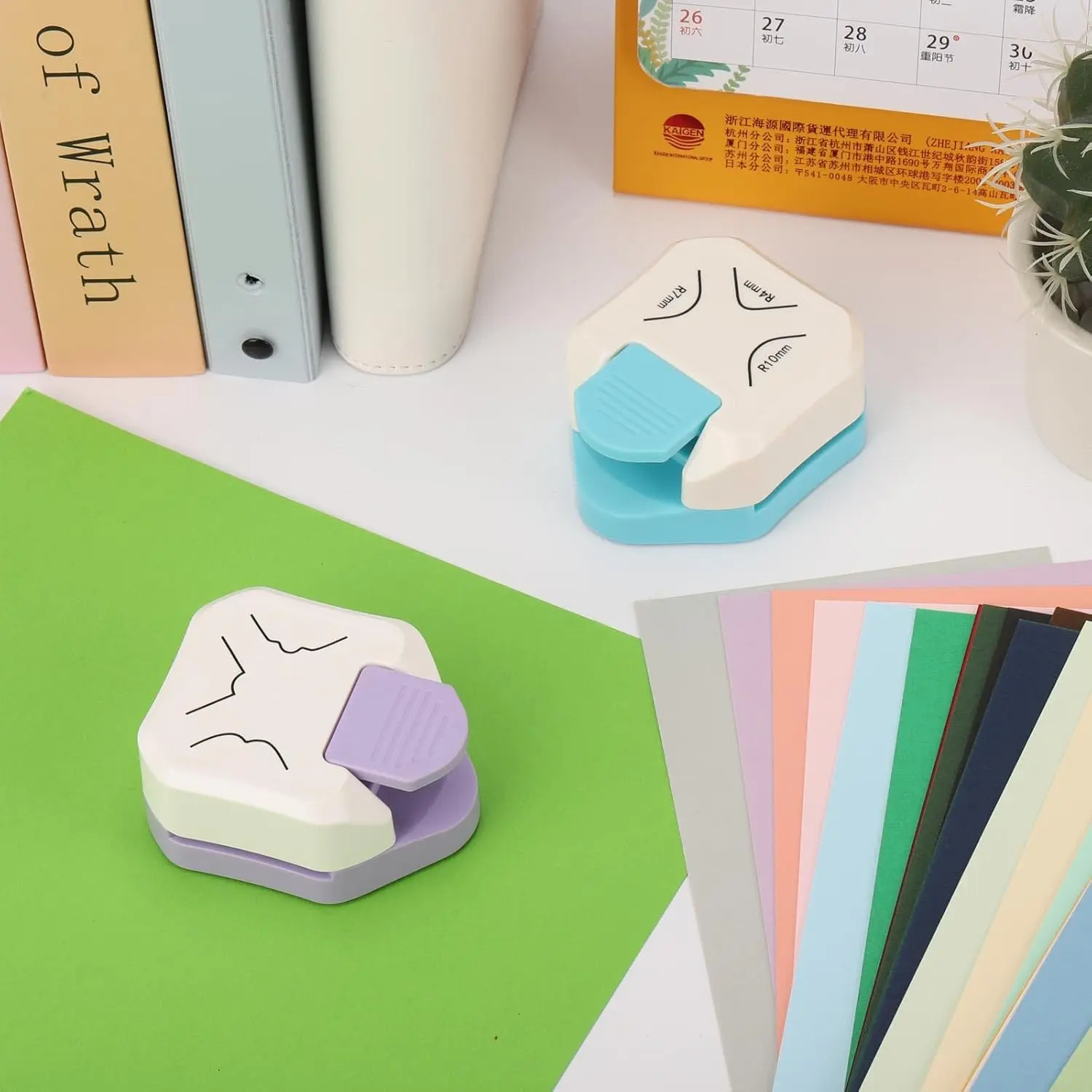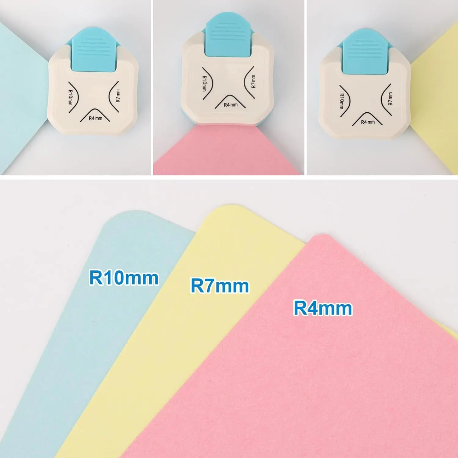 The 3 in 1 corner punch allows you to punch 4mm, 7mm, and 10mm bookmark corners, and the size of each corner is silk-screened the top for your convenience in choosing which to use