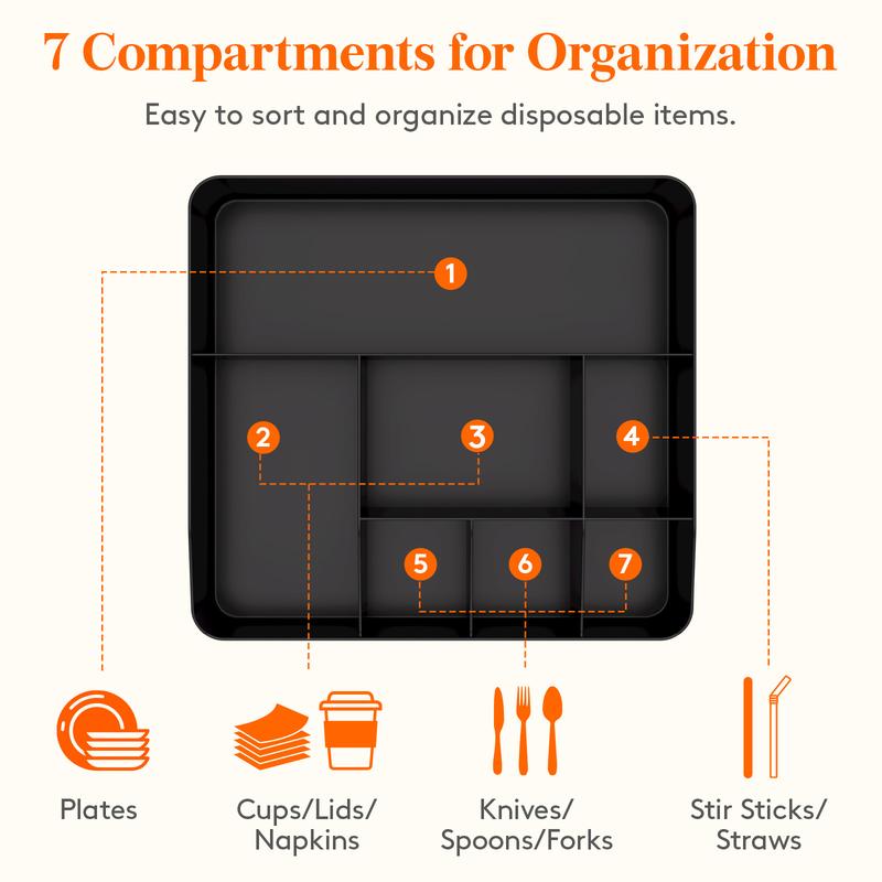 ·Paper plate organizer with seven compartments.