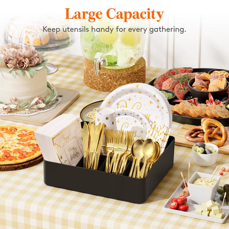 Paper Plate Organizer for Kitchen Countertop, Cutlery Flatware Dispenser Box for Cup Spoon Fork Plate Napkin, BlackPaper Plate Organizer for Kitchen Countertop, Cutlery Flatware Dispenser Box for Cup Spoon Fork Plate Napkin, BlackPaper Plate Organizer for Kitchen Countertop, Cutlery Flatware Dispenser Box for Cup Spoon Fork Plate Napkin, Black