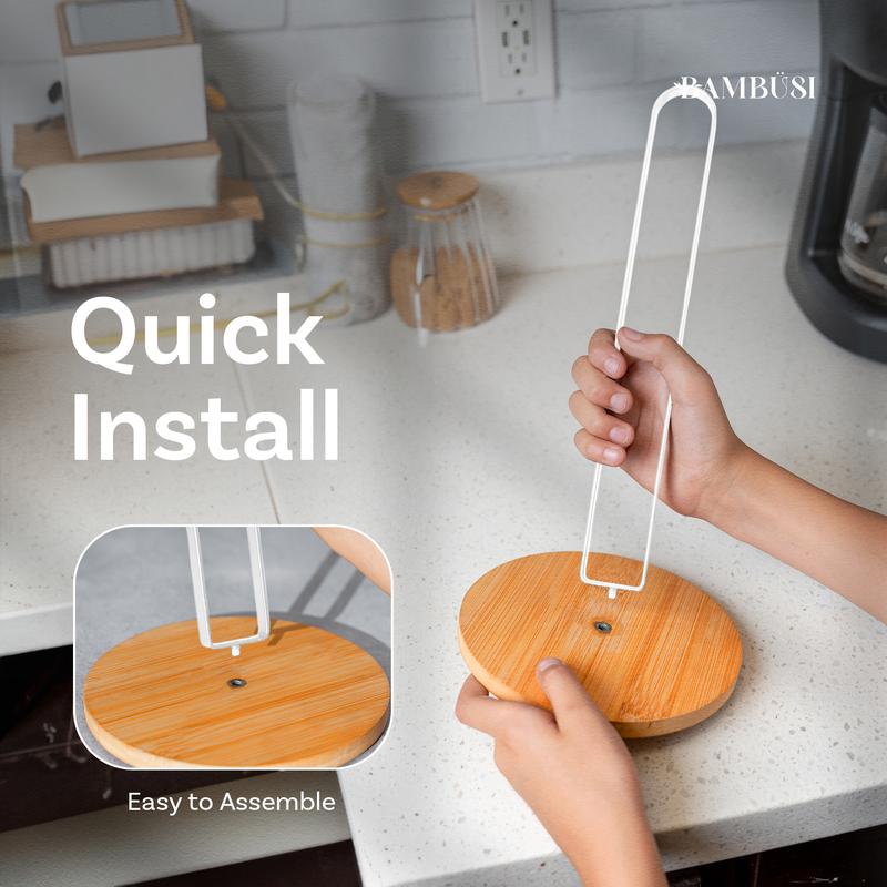 Stylish & Durable Design: This paper towel holder has a sleek black rod and a natural bamboo color base, giving the wood paper towel holder a modern, minimalist look. It's built to last and is perfect for any kitchen or office.