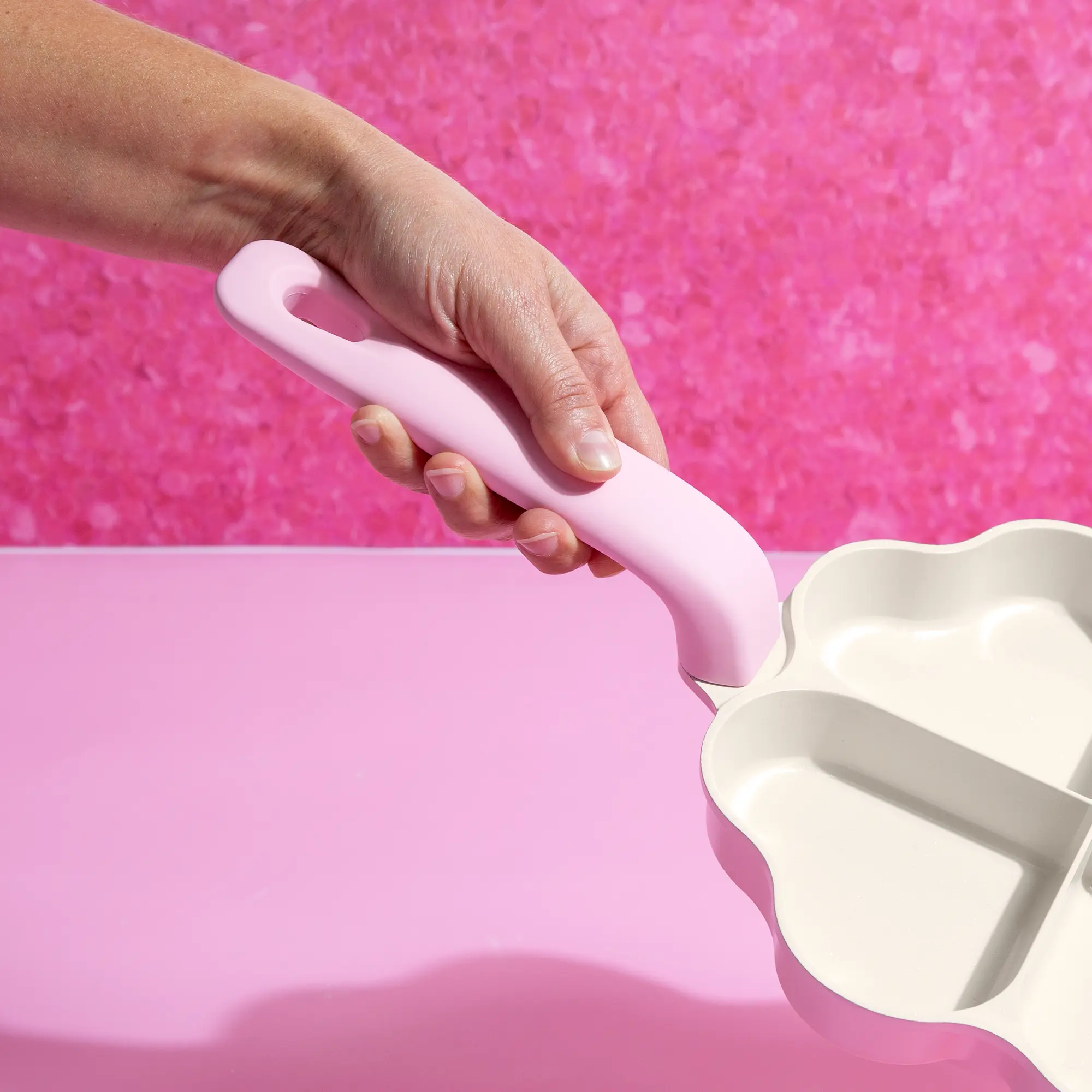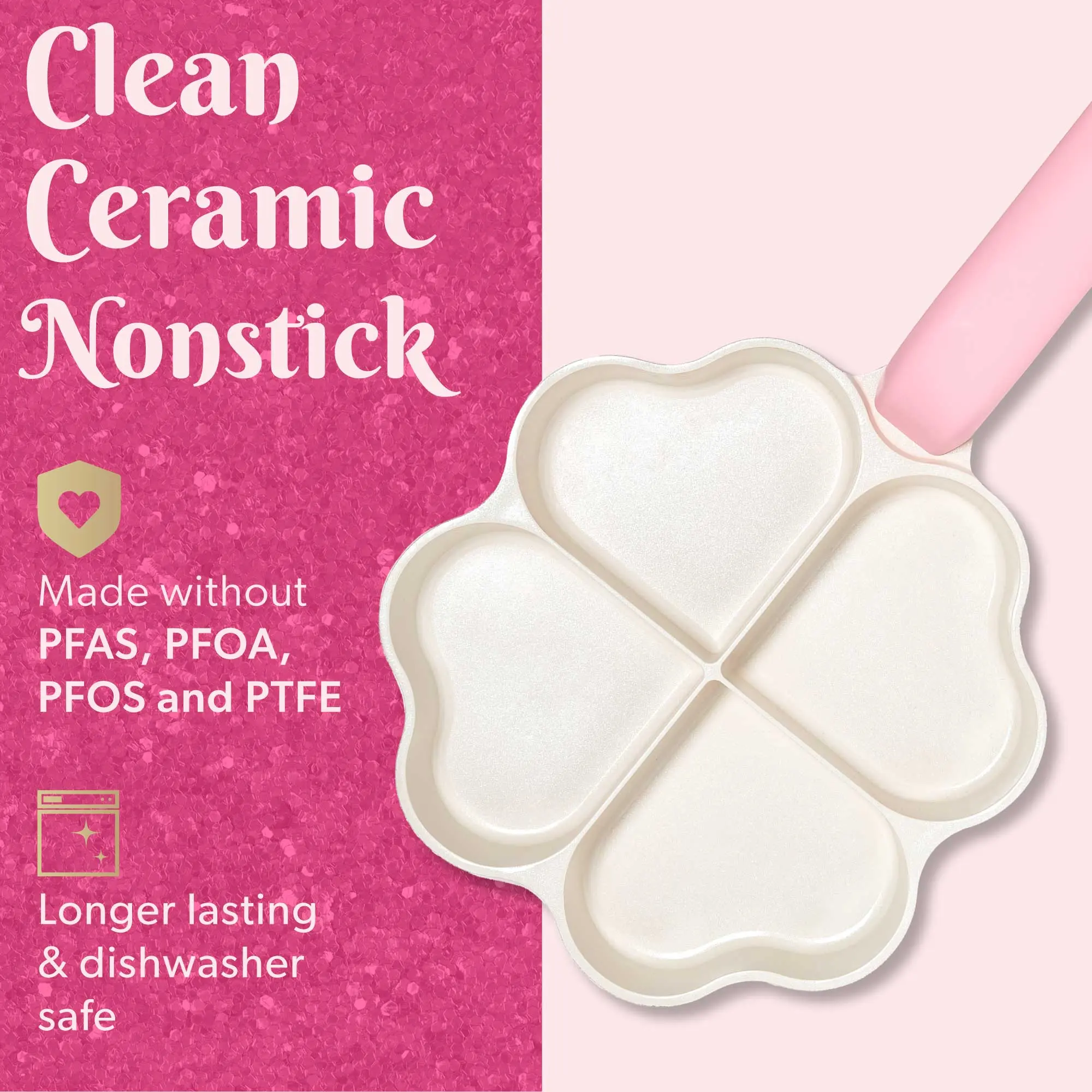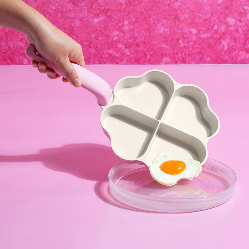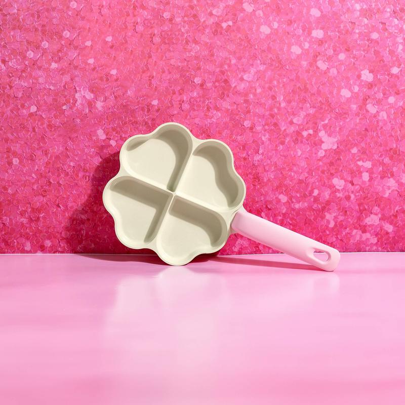 ·8-inch pink heart-shaped fry pan that adds a touch of glam to any kitchen