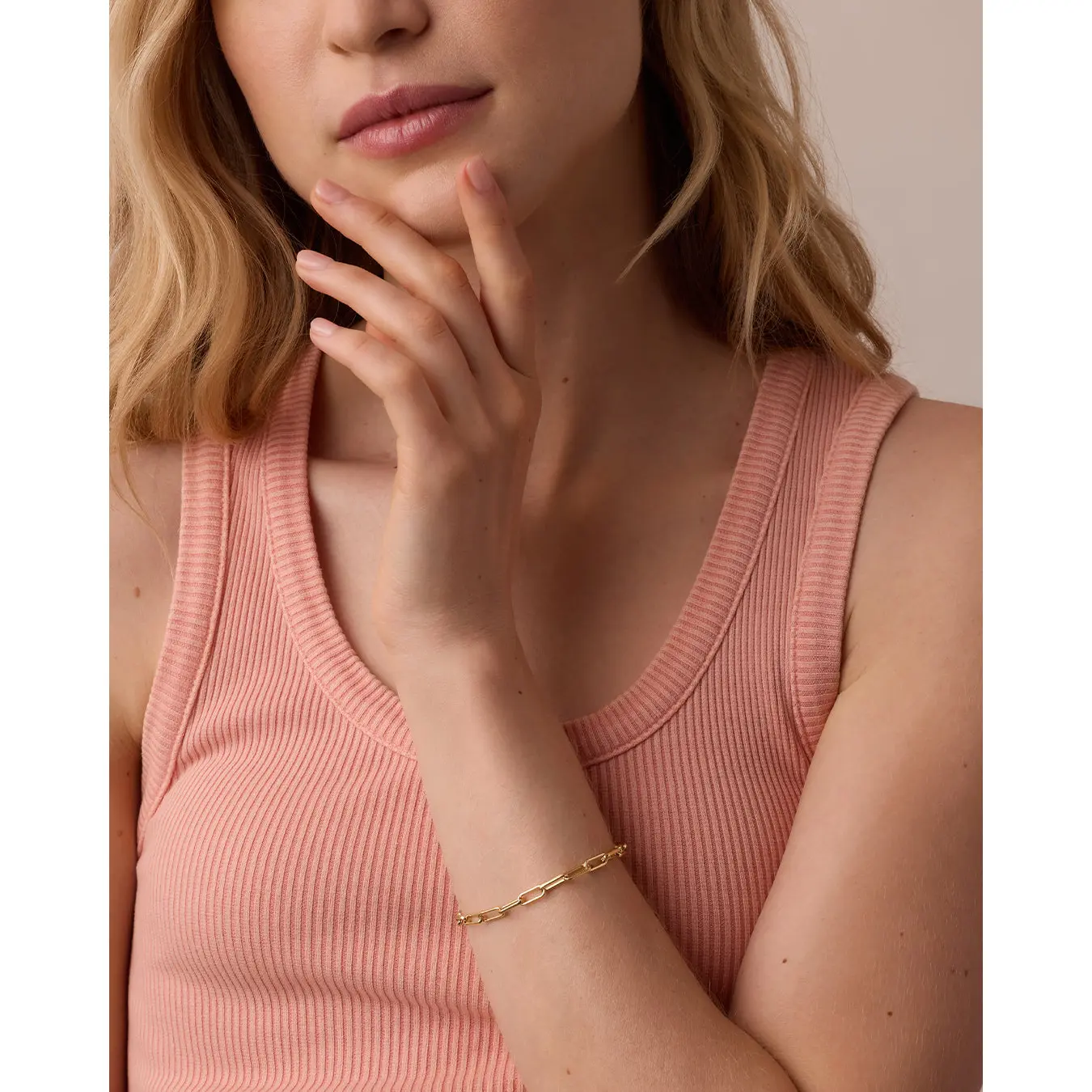 Timeless Design – A classic gold paperclip chain that pairs beautifully with any bracelet combo.