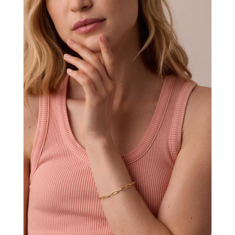 Inspired by the best-selling Parker Necklace, this bracelet brings a touch of style to your wrist stack. Designed with a modern paperclip chain and a refined gold finish, it’s a must-have for everyday wear or dressing up your evening look.