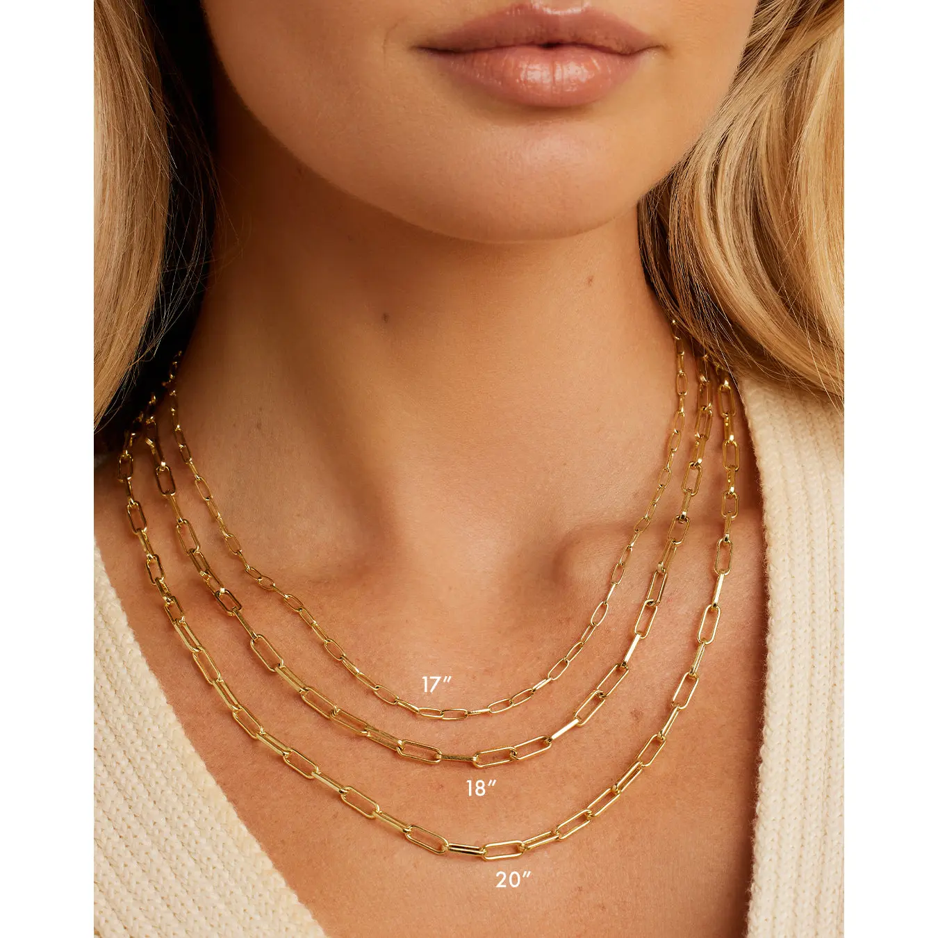 Effortless Style – Gold-plated paperclip links elevate any outfit, day or night.