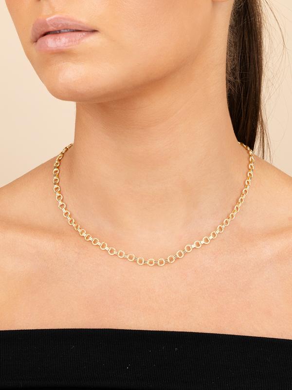 A fresh riff on the classic chain. This polished necklace features interlocked twisted links for texture that catches the light just right. Wear it with open necklines or layered with fine chains for a sleek, tonal moment.