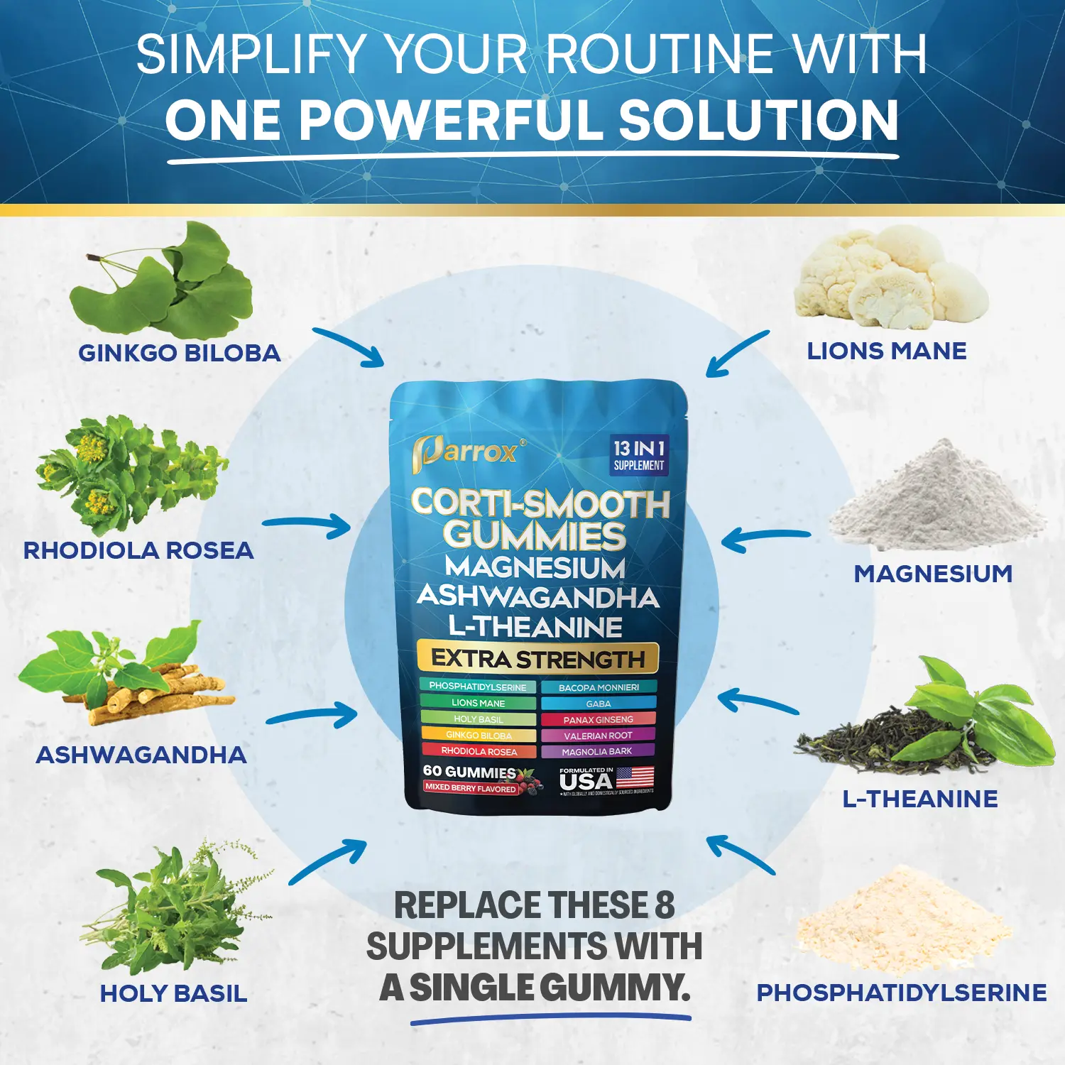 Find your daily balance with Parrox Corti-Smooth Gummies. These delicious mixed berry gummies are made for busy adults looking for an easy, enjoyable way to maintain focus, calm, and balance through everyday life.