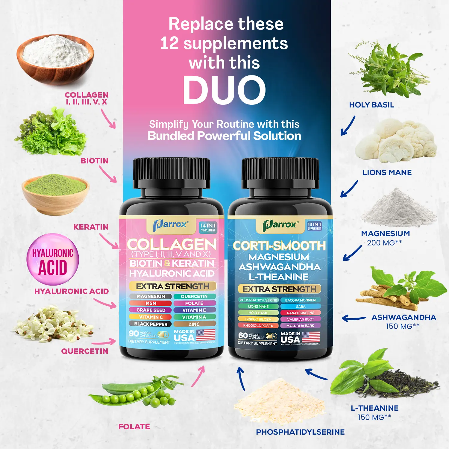 ·Biotin, Hyaluronic Acid, Vitamin C and more for beauty support