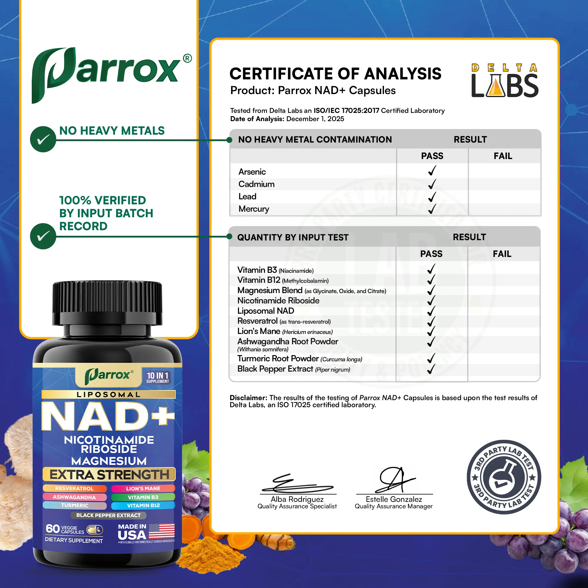Fuel your daily vitality with PARROX’s advanced blend of NAD+ precursors, essential nutrients, adaptogens, and botanical extracts. Designed for those who want to support energy production, focus, and overall wellness.