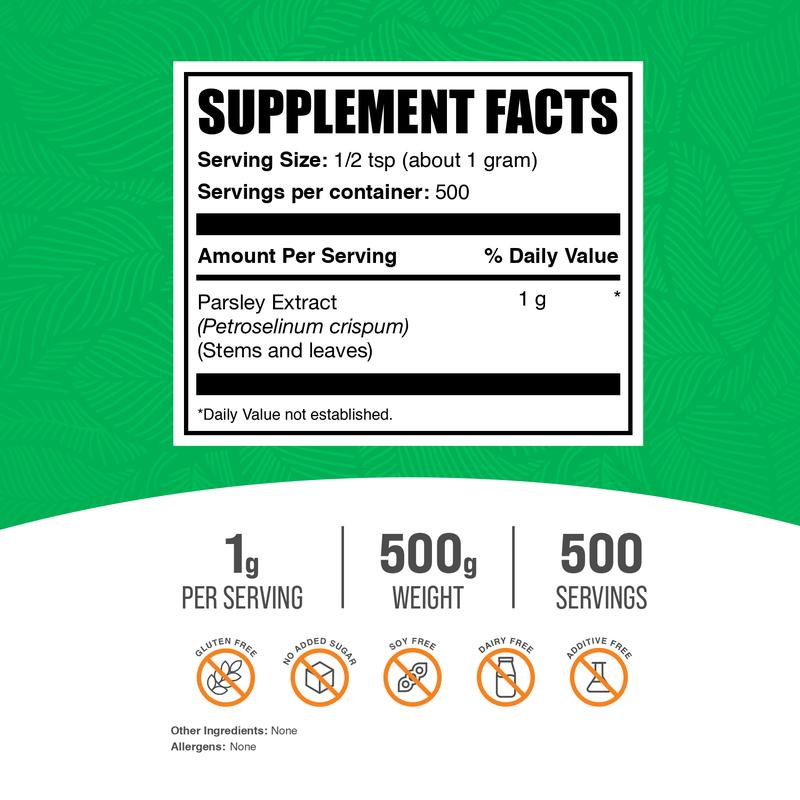 Unleash the power of green with BulkSupplements Parsley Extract Powder! Our pure and blendable powder is a fantastic addition to your morning smoothie or evening salad.