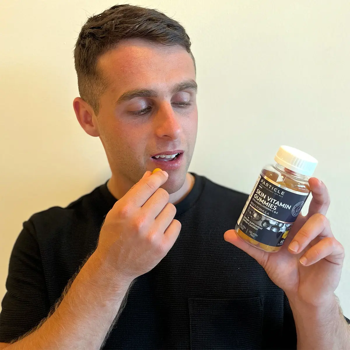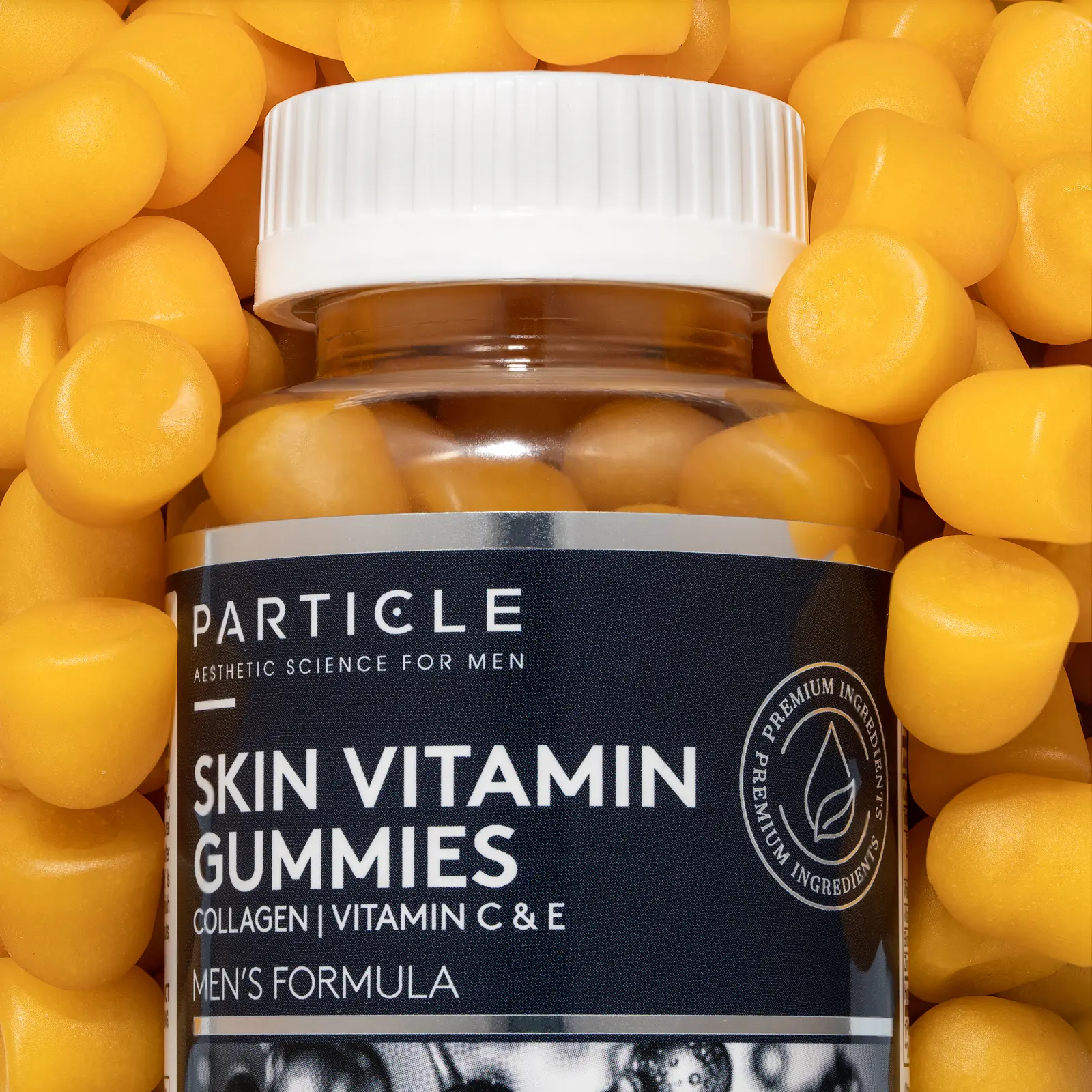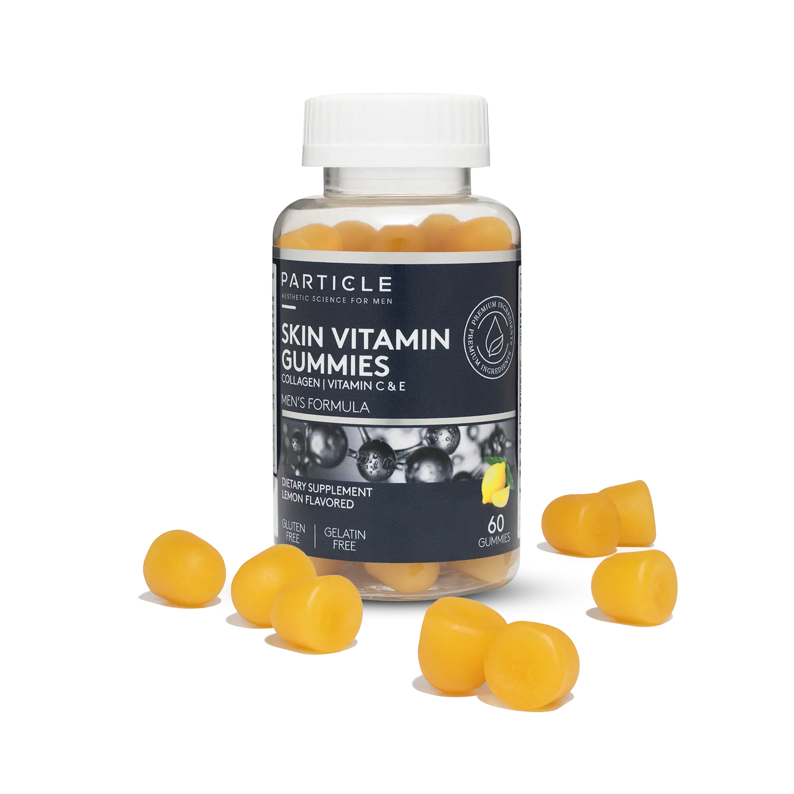 Each bottle of Particle Skin Vitamin Gummies contains 60 vitamin gummies and weighs 10 oz.