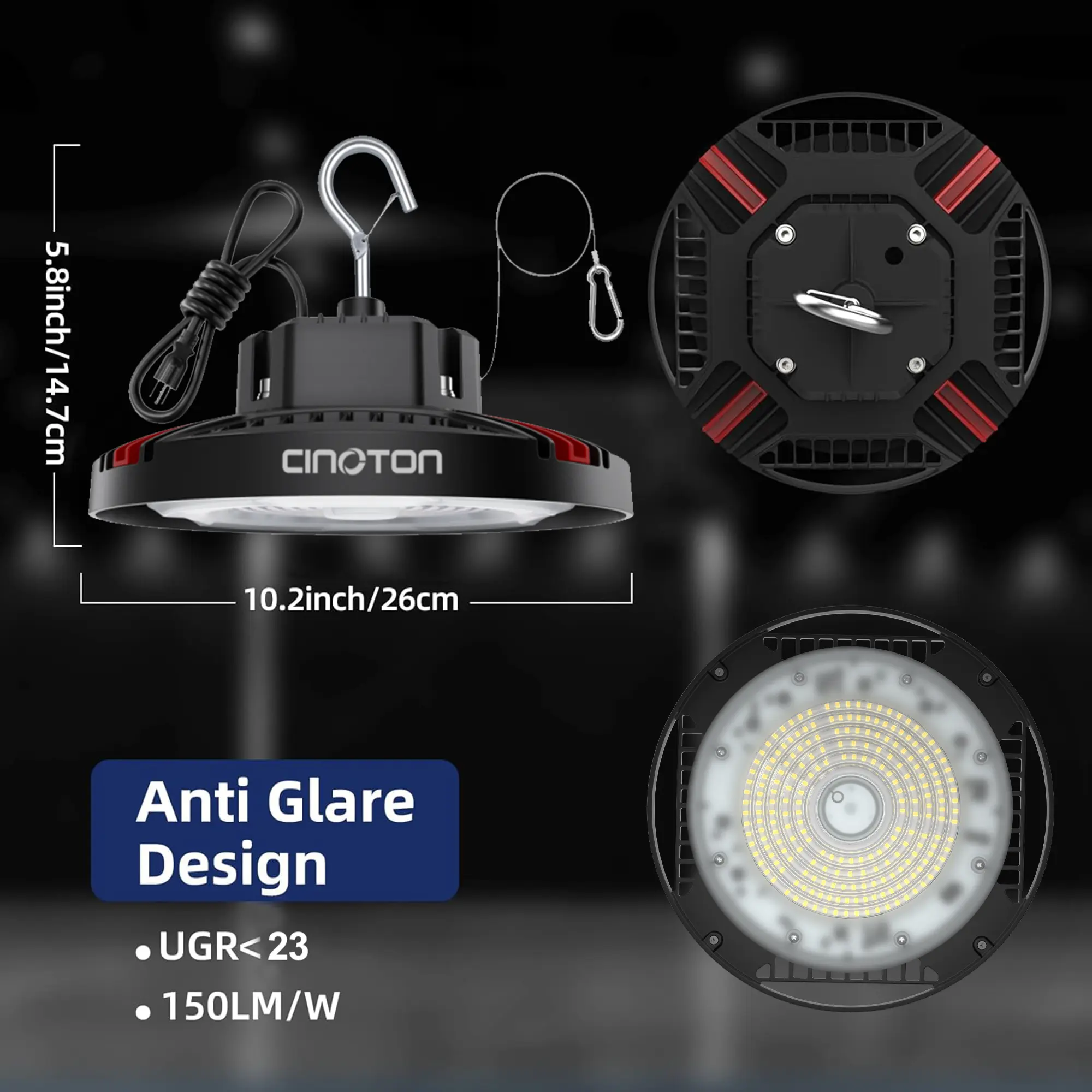 The CuLiDing 160W UFO high bay shop light delivers a remarkable 24000-lumen output at 5000K daylight. It rivals 700W halogen lamps/sodium lamps, reducing your electric bill by up to 85%. This efficiency ensures you save on energy costs without compromising on brightness.