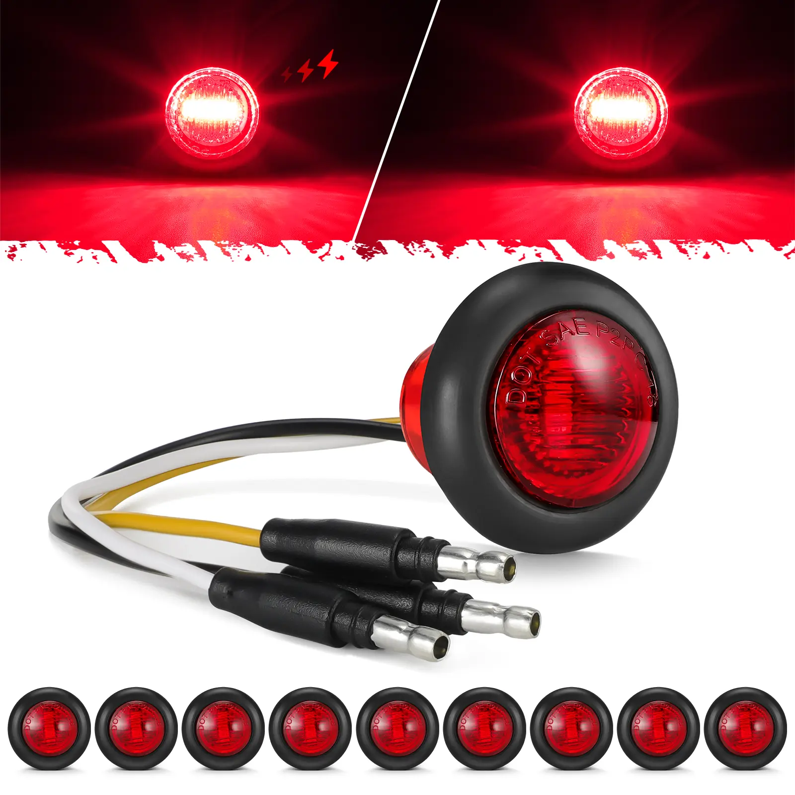 Elevate your trailer's visibility with the Partsam 10-Piece 3/4" Red Strobe + Marker Lights. These LED lights offer dual functionality as turn signals and clearance lights. Perfect for trailers, trucks, vans, RVs, ATVs, buses, and more. The 12V waterproof design ensures durability and safety.