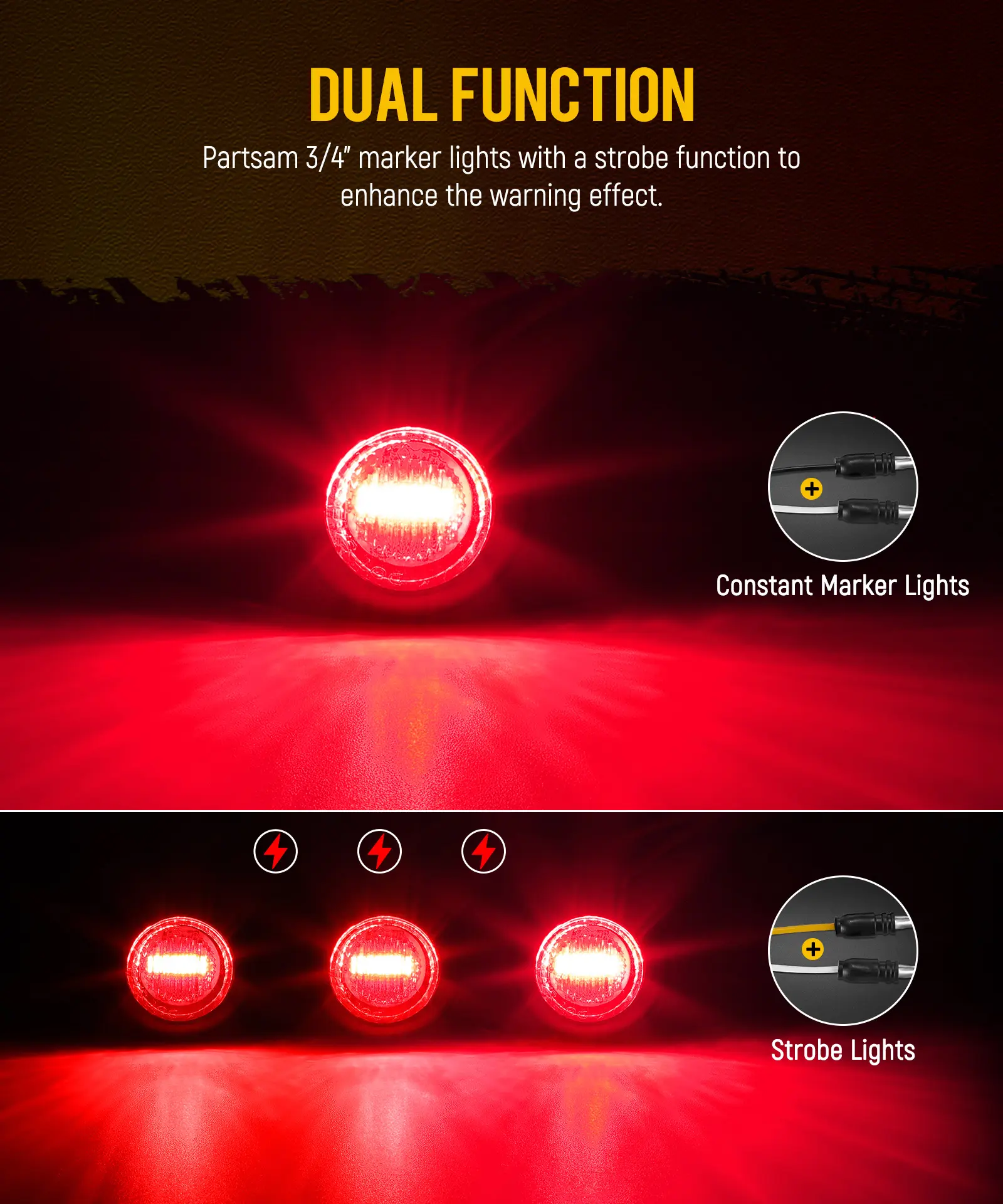 🚚 Partsam 3/4" Red Strobe + Marker Lights