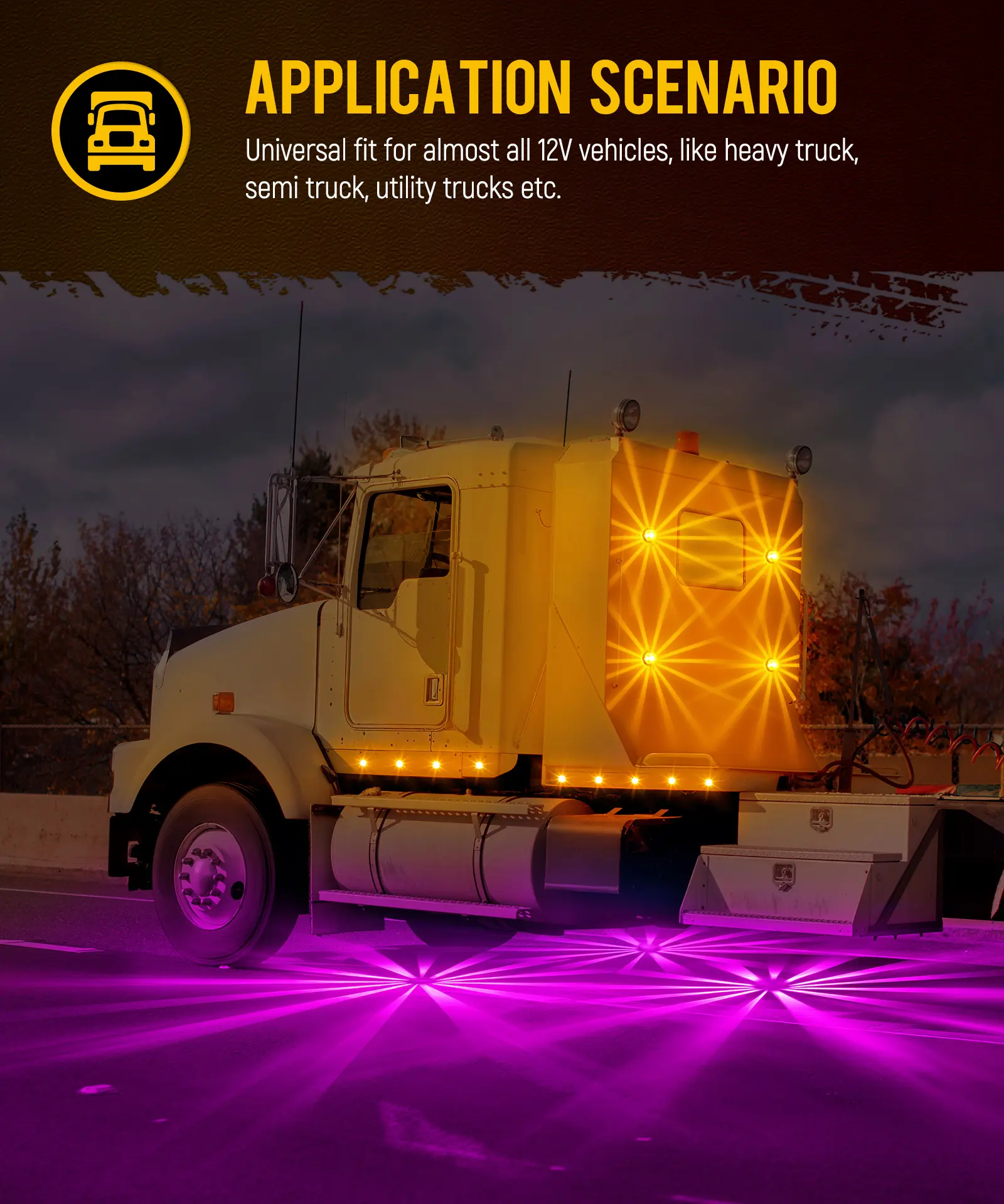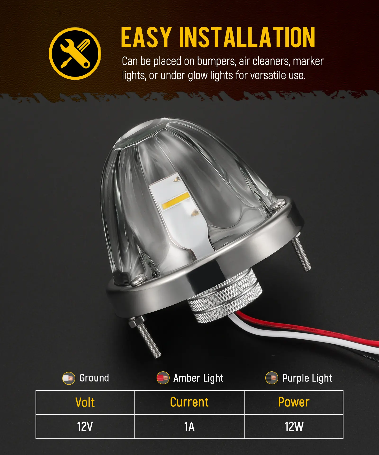 ·[Easy Installation] Hardwired with 3 wires, White wire is ground, red is amber light serves as turn signal/marker lights, black is purple light serves as auxiliary lights