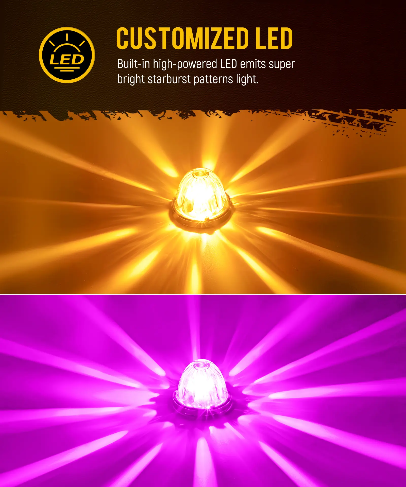 ·[Super Bright][Patent Pending] The dual color watermelon lights built-in customized high-powered LED emits super bright starburst pattern light, and glass lens design makes the light sharper and more detailed lines, making your trucks much more eye-catching