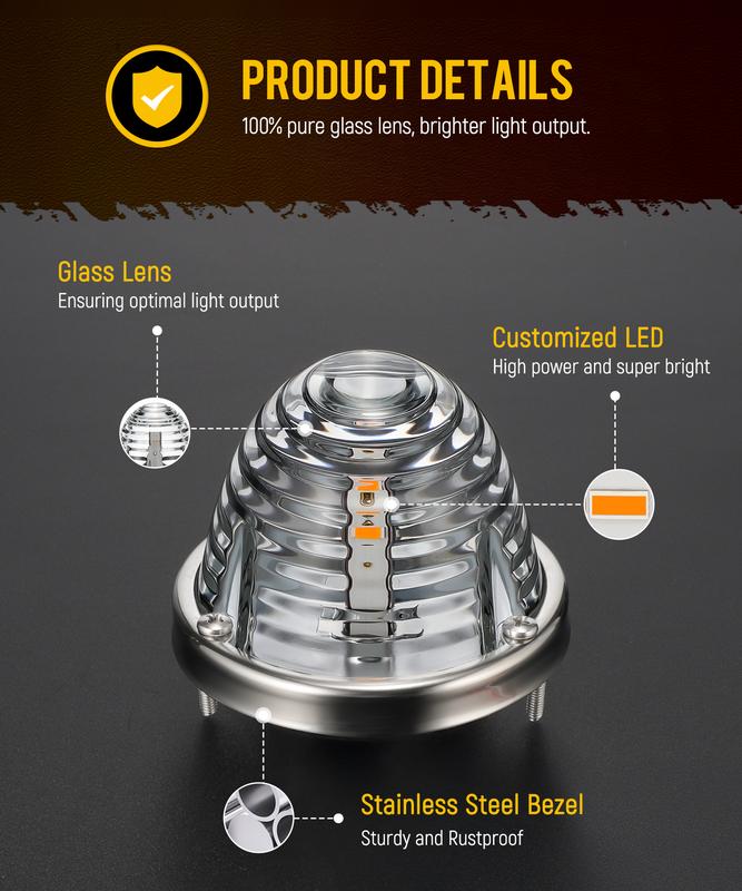 ·[Well Made] 100% pure clear glass lens ensures the LED light provides optimal brightness and visibility; The stainless steel bezel provides long-lasting protection against the elements