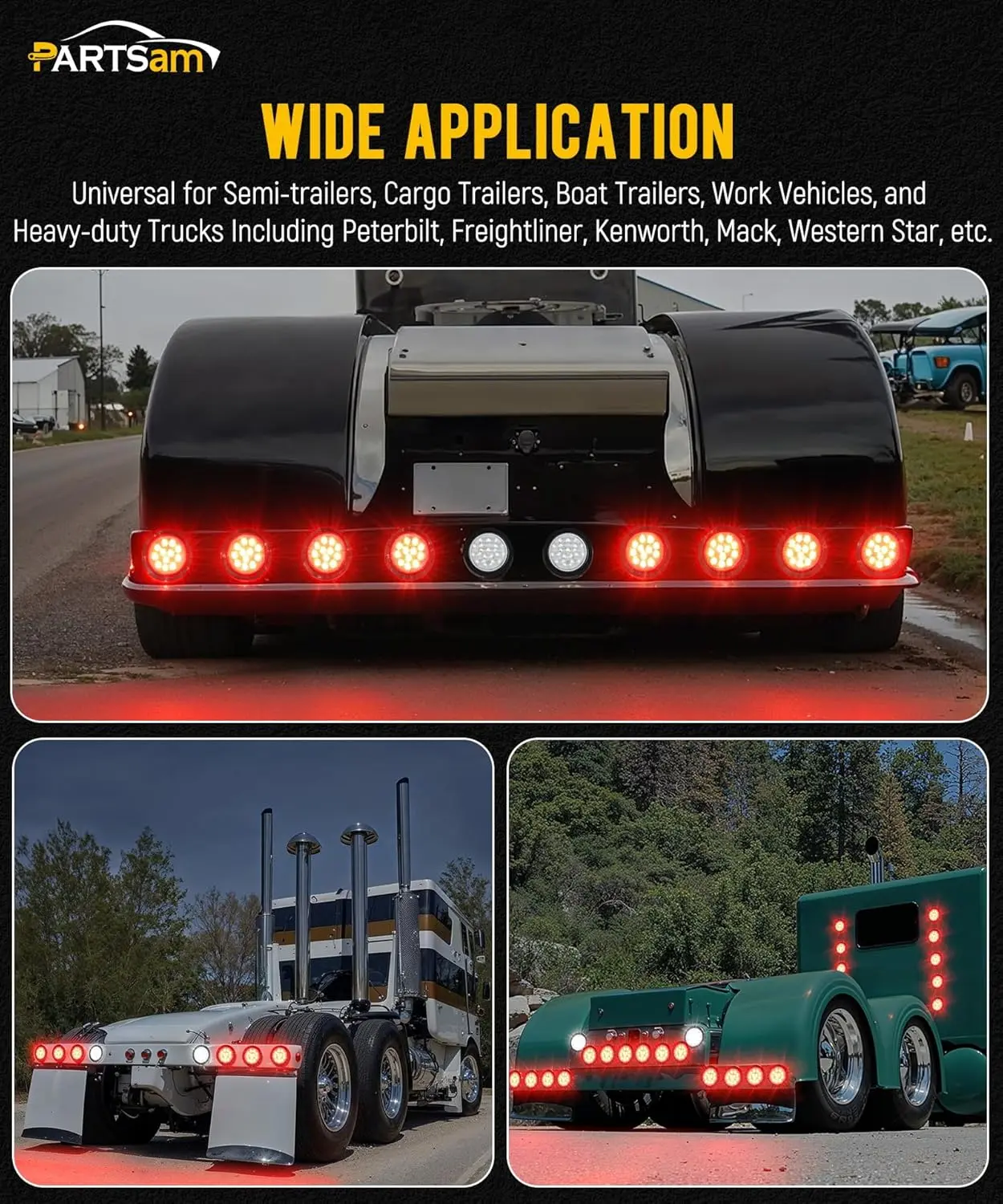8x 4-inch round LED lights (red), grommets, and 3-prong pigtails for easy installation.