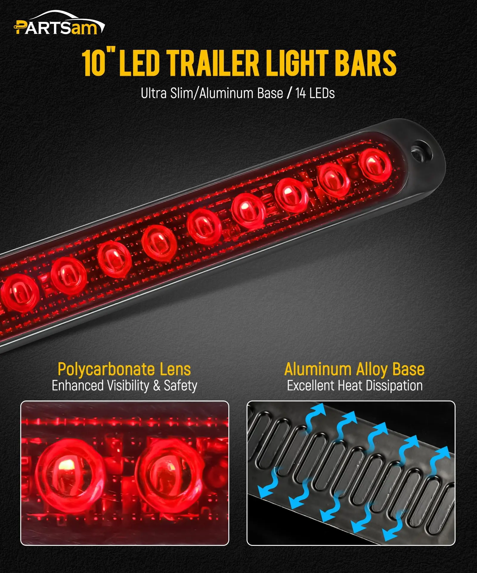 [Ultra Slim, Aluminum Alloy Base] PARTSam 10" 14LEDs light bars with ultra-slim 0.2" height and polycarbonate lens for enhanced visibility and safety, featuring an aluminum alloy base with excellent heat dissipation.