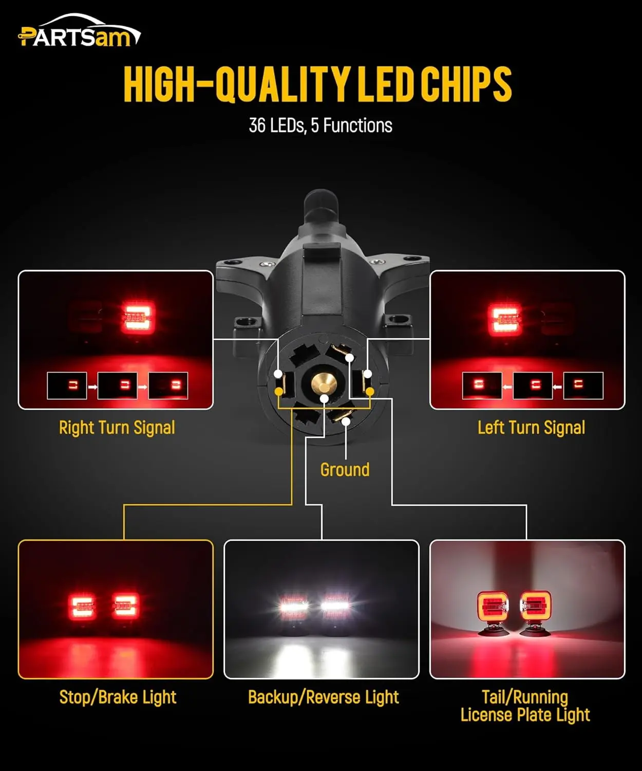·[Wireless Magnetic Trailer lights] Includes 36 LEDs with 26 red lights for tail/stop/turn signals and 10 white lights for backup/reverse/license lights; designed for enhanced visibility while towing