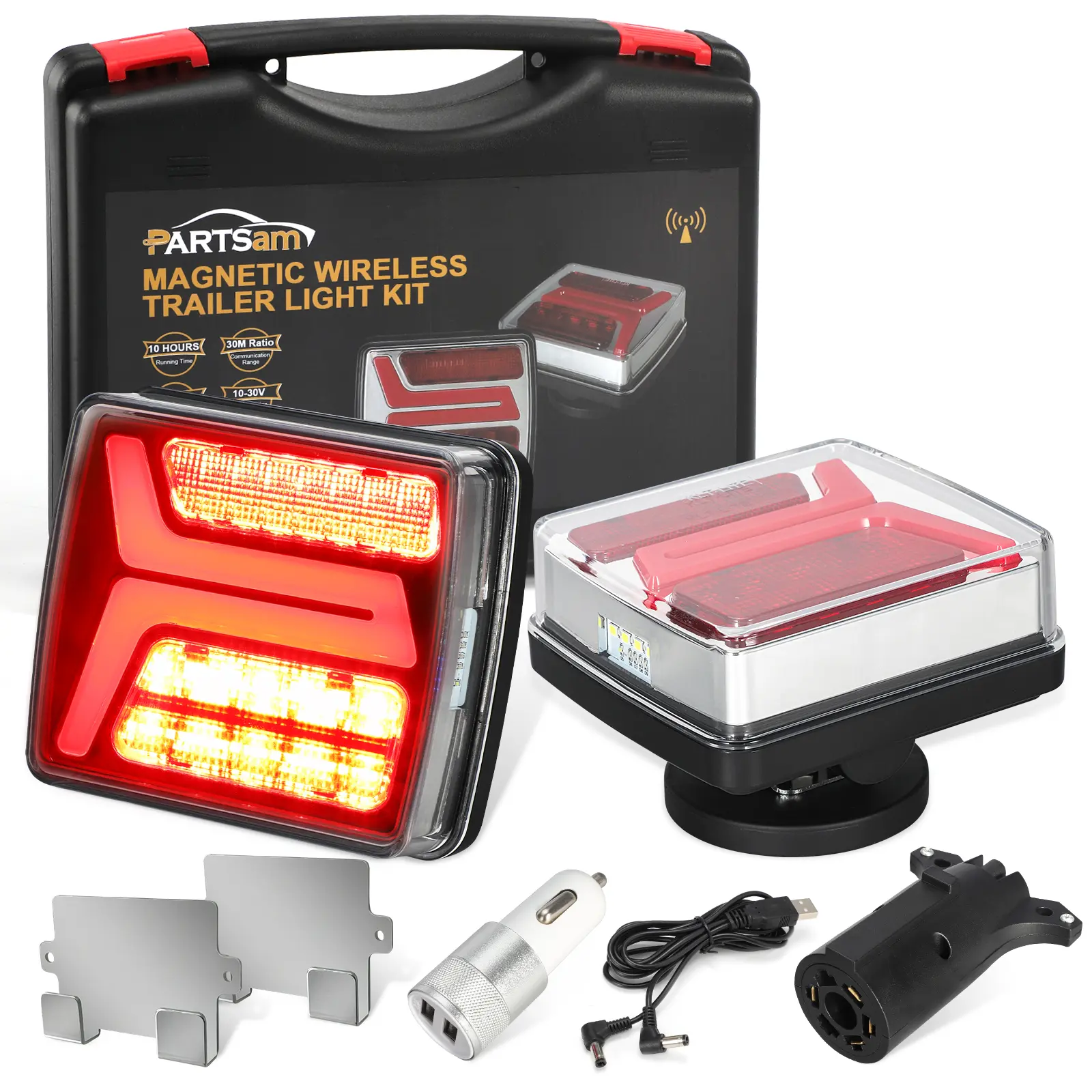 Partsam Wireless LED Trailer Light Kit, Square Portable Magnetic Stop Turn Reverse License Towing Tail Lights w/Metal Bracket 7-Pin Plug for Trucks Trailers 12-24V IP67 Waterproof #wirelessledtrailerlights #wirelesstrailerlights #wirelesstrailerlightskit