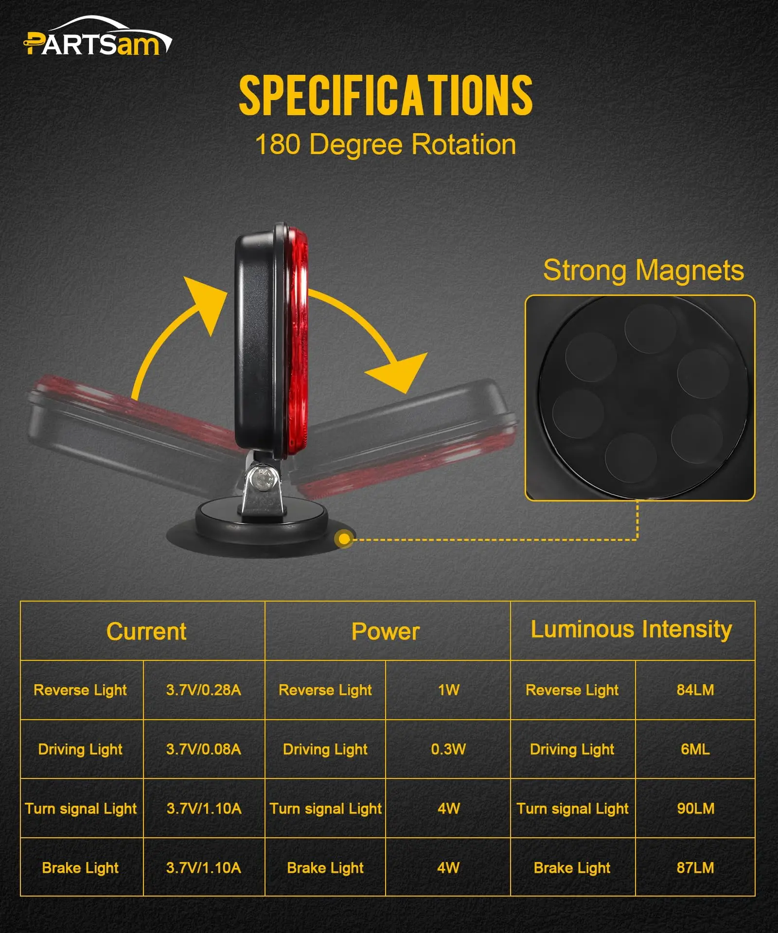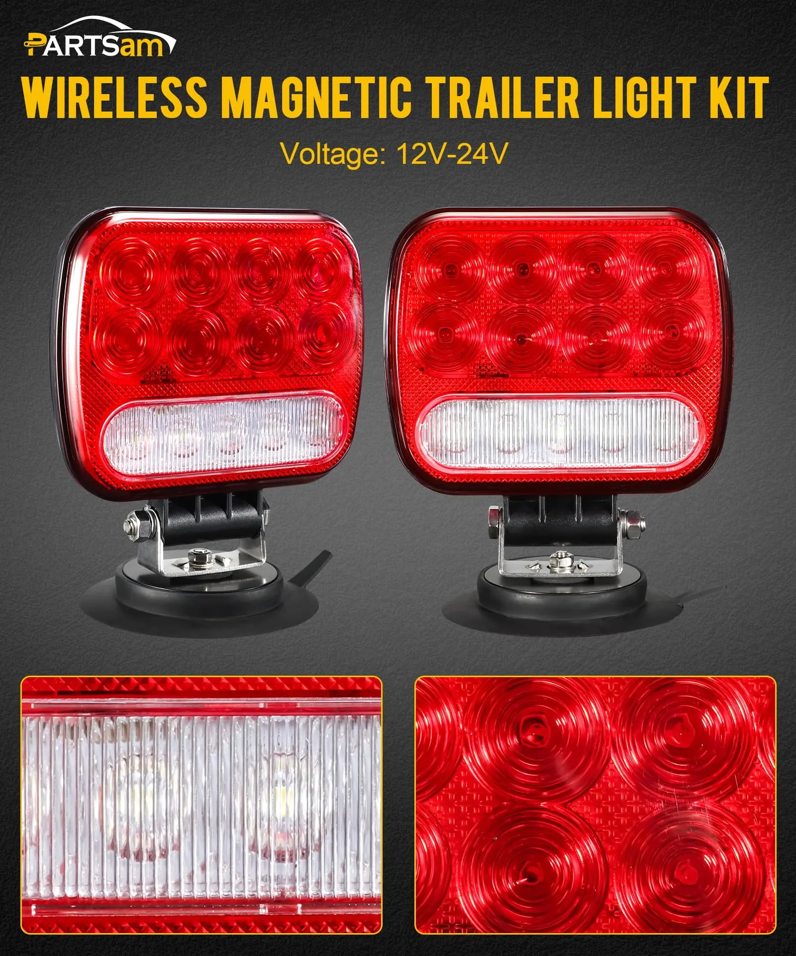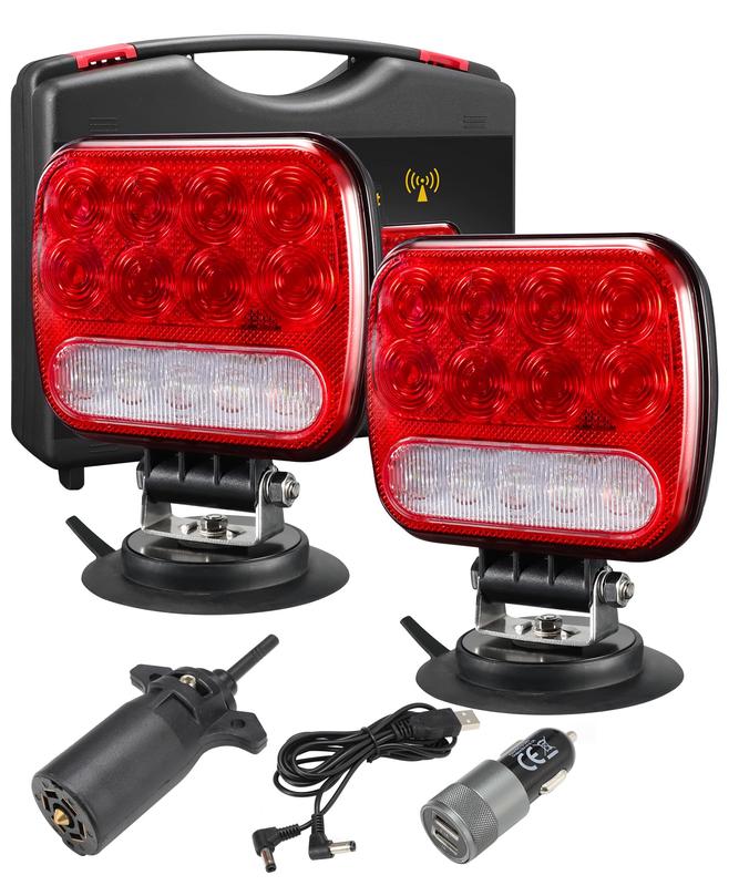 ·[Wireless Magnetic Trailer lights] Includes red lights for tail/stop/turn signals andwhite lights for backup/reverse functions; designed for enhanced visibility while towing