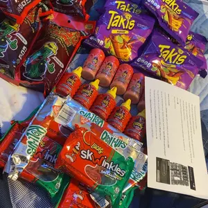 SECOND ORDER FROM THEM!! it was a little lighter this time so i was nervous but everything looks amazing and well packaged just like last time! i was missing 1 singular fruit roll up😭 but it’s not upsetting, best deals on the market!! pls purchase!!