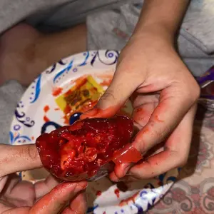 cut it in half and split between two people to make sure you like it first before digging into them all at once !! Luckily it was a hit in my house. Sweet/sour ,salty ,spicy flavors in a pickle - definitely stains ! Used bleach to remove from surfaces