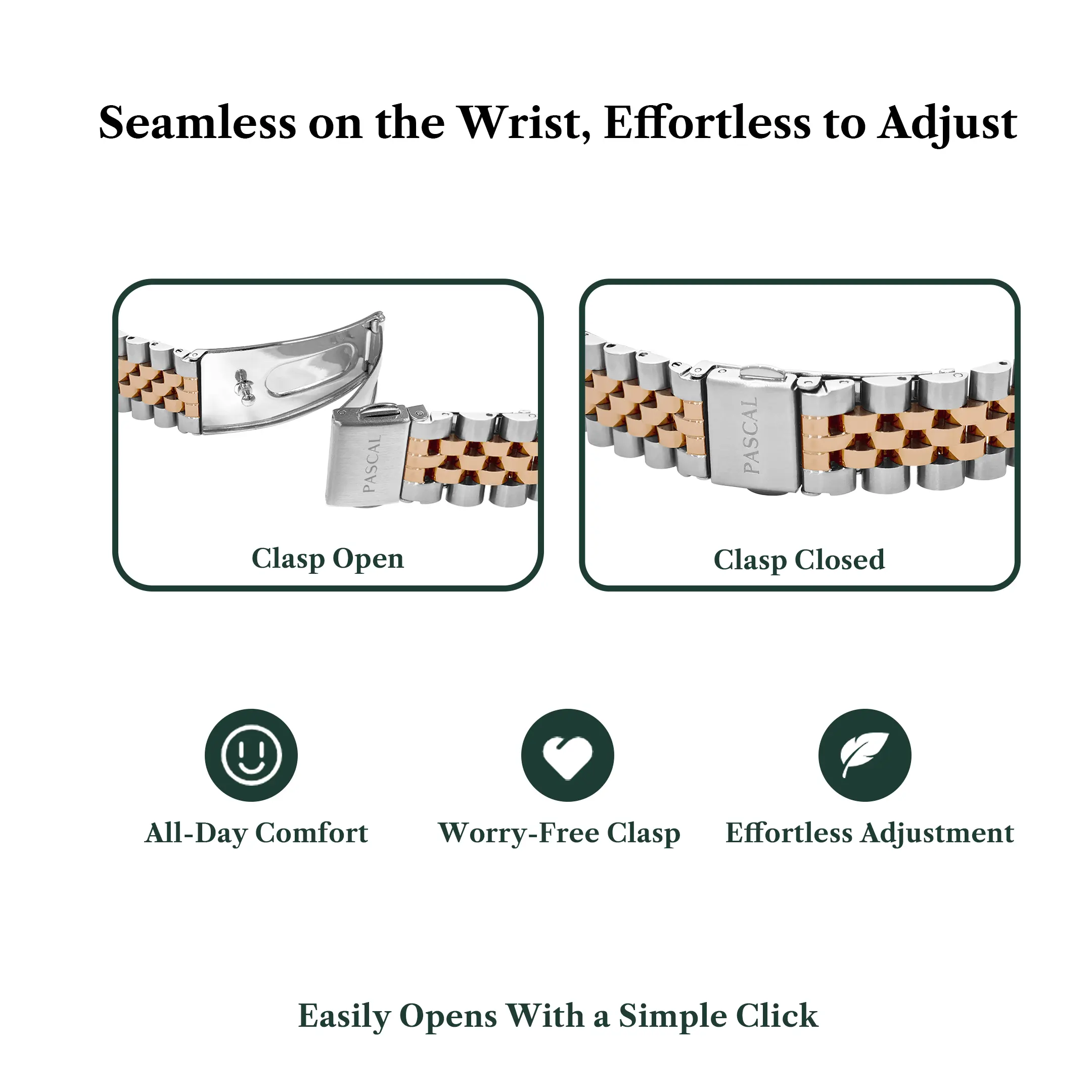 ·Strap Length: Fits wrist sizes from 6.5" to 9.5"