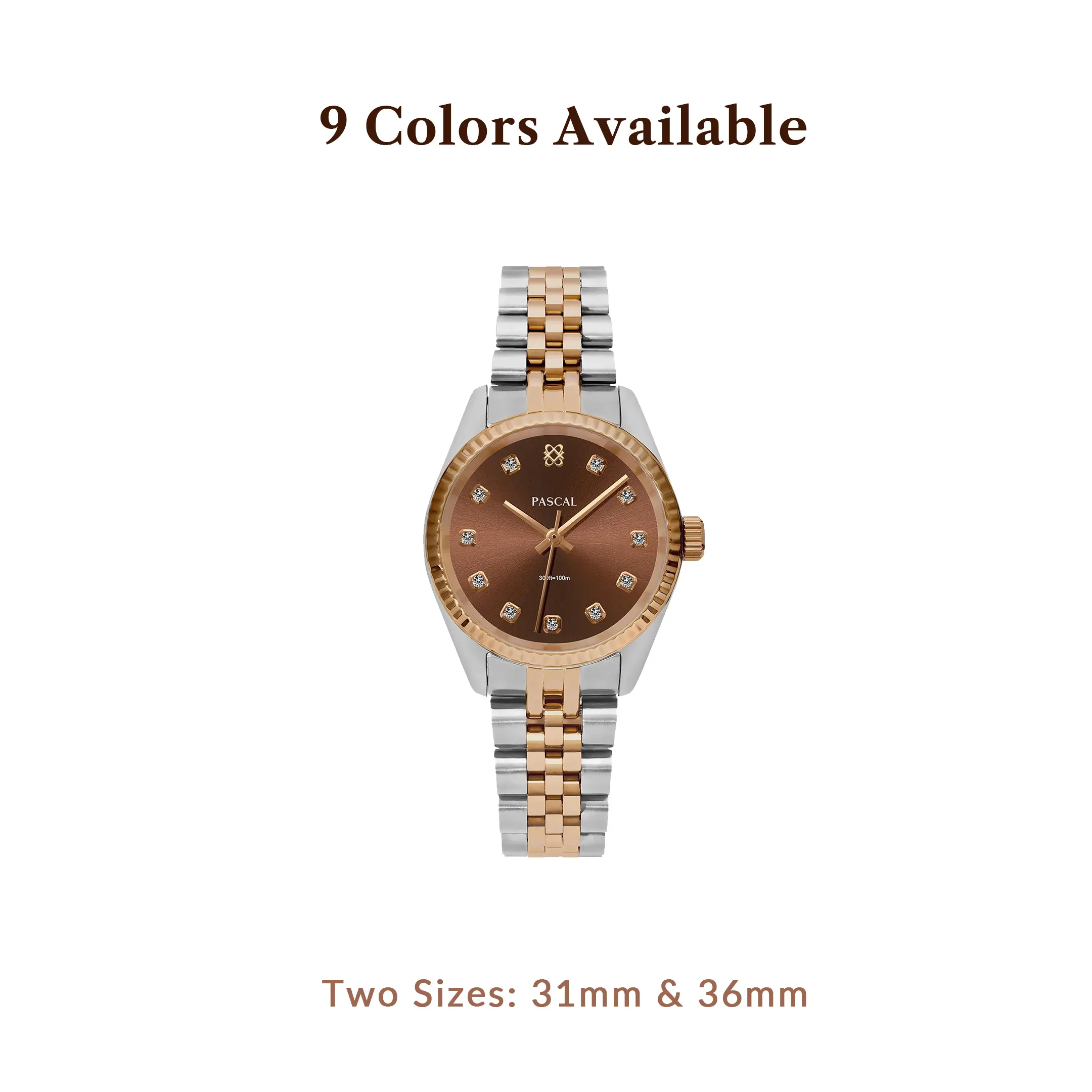 Embrace the richness of chocolate-toned metal, making a bold statement of refinement and indulgence. The exquisite sunburst pattern around the dial's periphery adds timeless allure. This watch is perfect for women and men, available in 31mm and 36mm sizes.