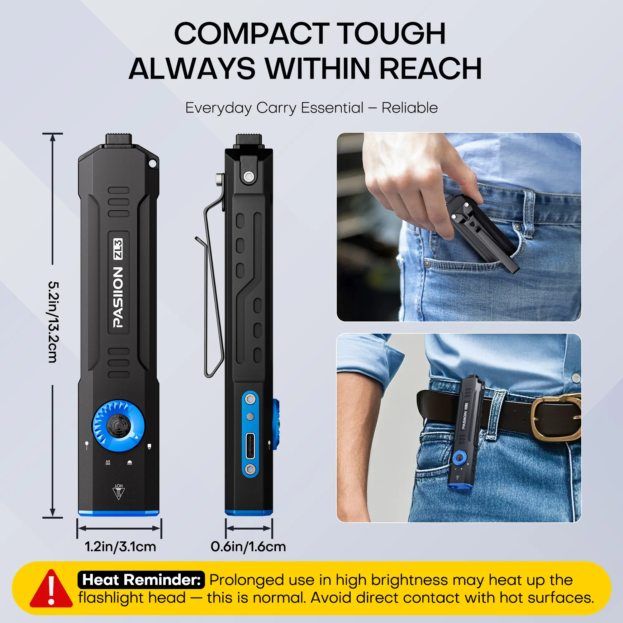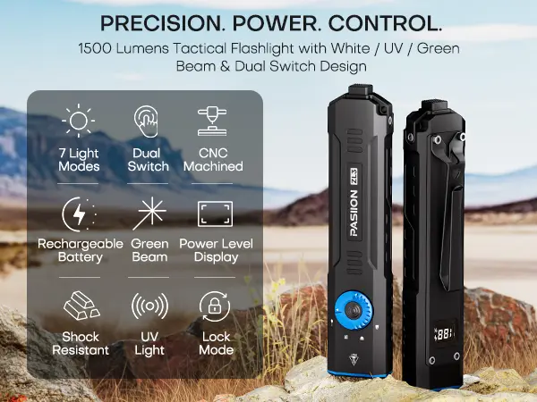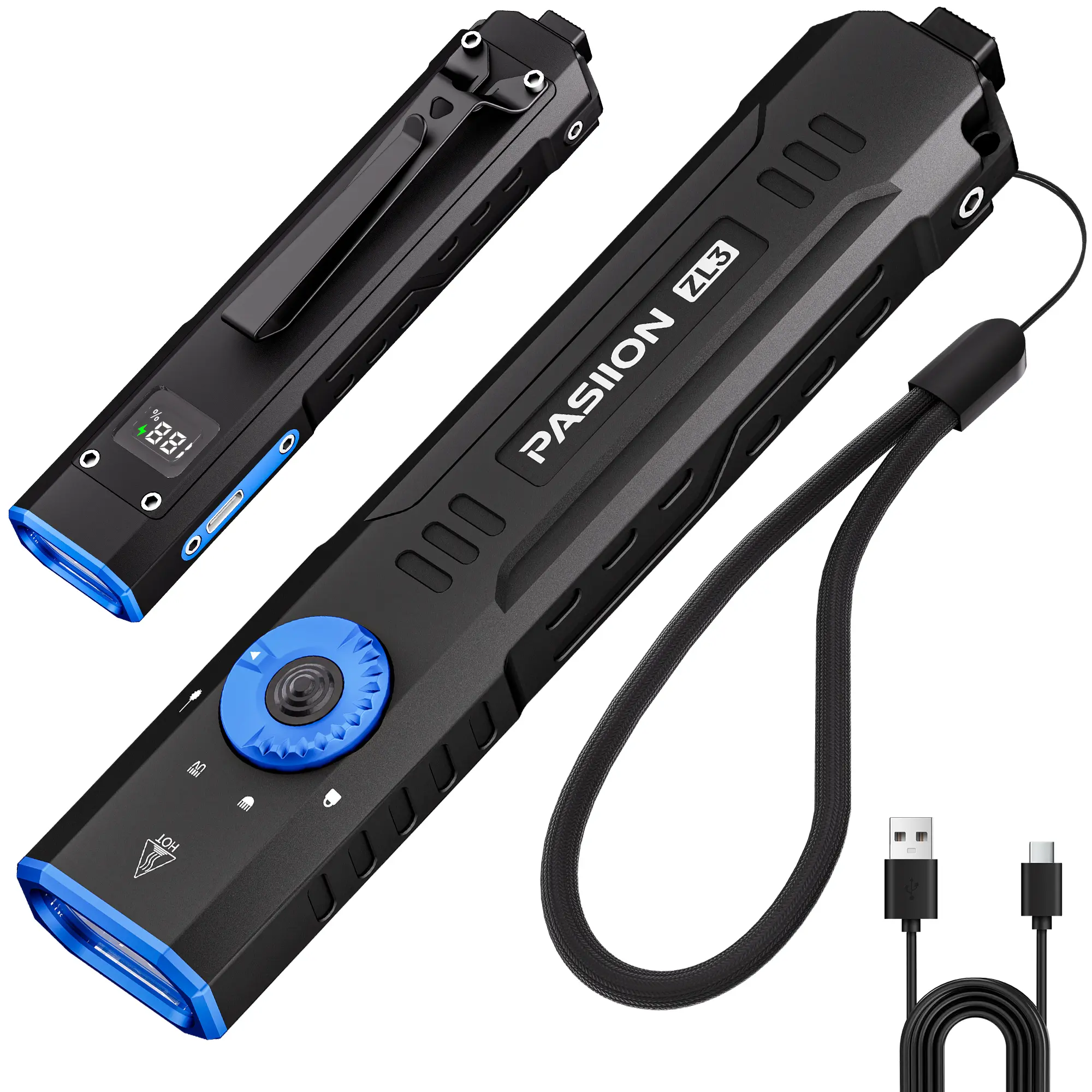 The 3000 Lumens Rechargeable EDC Flat Pro Flashlight is a versatile lighting tool. It features a green beam, UV, and white LED combo. Perfect for outdoor emergencies, this flashlight offers super bright illumination. 🌟