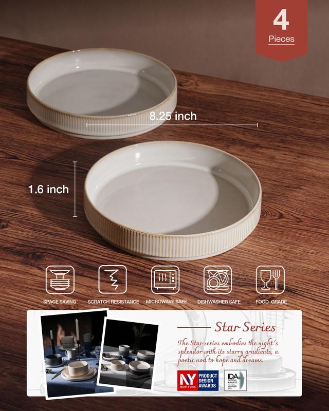5. Famiware Star 8.25'' Stoneware Large Pasta Bowl (Set of 4) Tableware, Cappuccino White