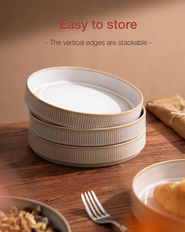 This stunning pasta bowl set is made of 100% lead-free glaze and Double Reactive glaze. The edge of each bowl is designed with raised vertical stripes with bright colors to make your table brilliant. It is a stylish dining bowl with a high-level appearance, perfect for a gift. The dish set can hold any food you like, which is a delicate gift for housewarming, weddings, and parties. Each dish is made of high-quality stoneware that is dishwasher and microwave-safe. Choosing your favorite tableware to make your eating fun and romantic!