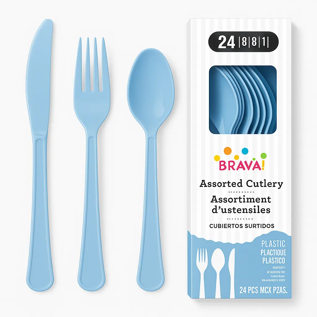 5. Brava! Pastel Blue Plastic Cutlery Set - 24 Count