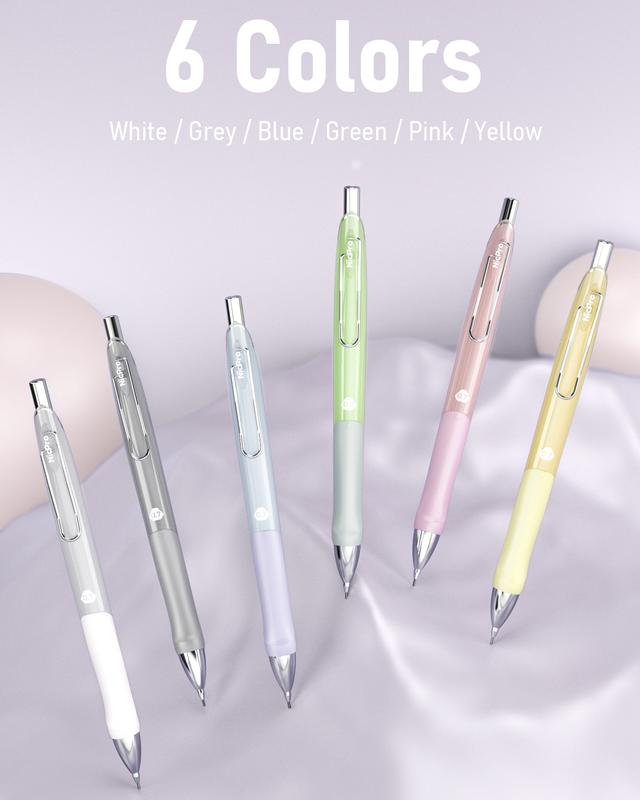 ·【Valued Packaged】: Come with 6Pack 0.7mm pastel mechanical pencils in 6 colors(GREEN / GREY / WHITE / PINK / BLUE / YELLOW), including 12 tubes black 0.7 lead refill, 3 Pack erasers, 9 x cap eraser refills, a plastic case.