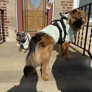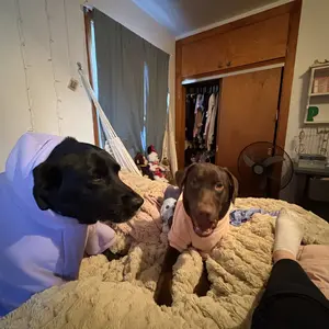Both love their hoodies so much! Wish I got a smaller size for my black lab but it is not that big of a deal. So glad me and my pups get to match!