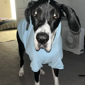 My dog loves this hoodie. Very snuggly and great size. Good is actually functional and fits over her giant head