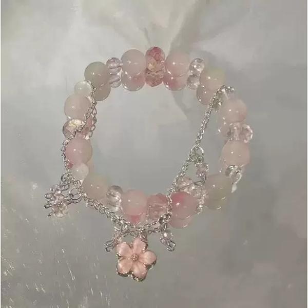 Product Description Elevate your jewelry collection with our **Pastel Pink Flower Charm Bracelet**—a dreamy blend of romance and whimsical style, perfect for lovers of Y2K and fairycore aesthetics. Crafted with care, this bracelet features soft pastel pink beads that exude a gentle, romantic glow. Interspersed among them are shimmering crystal beads, catching light from every angle to add a touch of sparkle. The star of the show is the delicate pink flower charm at the center, detailed with a tiny accent stone that lends an extra hint of elegance. Designed with a dainty silver-toned chain and elastic elements, it offers a comfortable fit for most wrist sizes. Whether you’re dressing up for a special occasion or adding a fairycore flair to your everyday look, this bracelet seamlessly complements outfits—pair it with flowy dresses, cozy knitwear, or even casual tees and jeans. Ideal as a gift for yourself or a loved one, this piece captures the magic of Y2K nostalgia and enchanted fairycore vibes, making every wear feel like a little escape into a whimsical world.