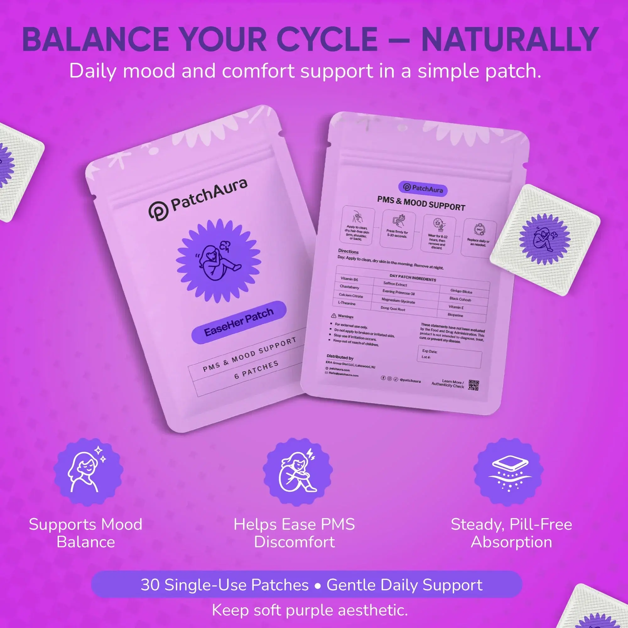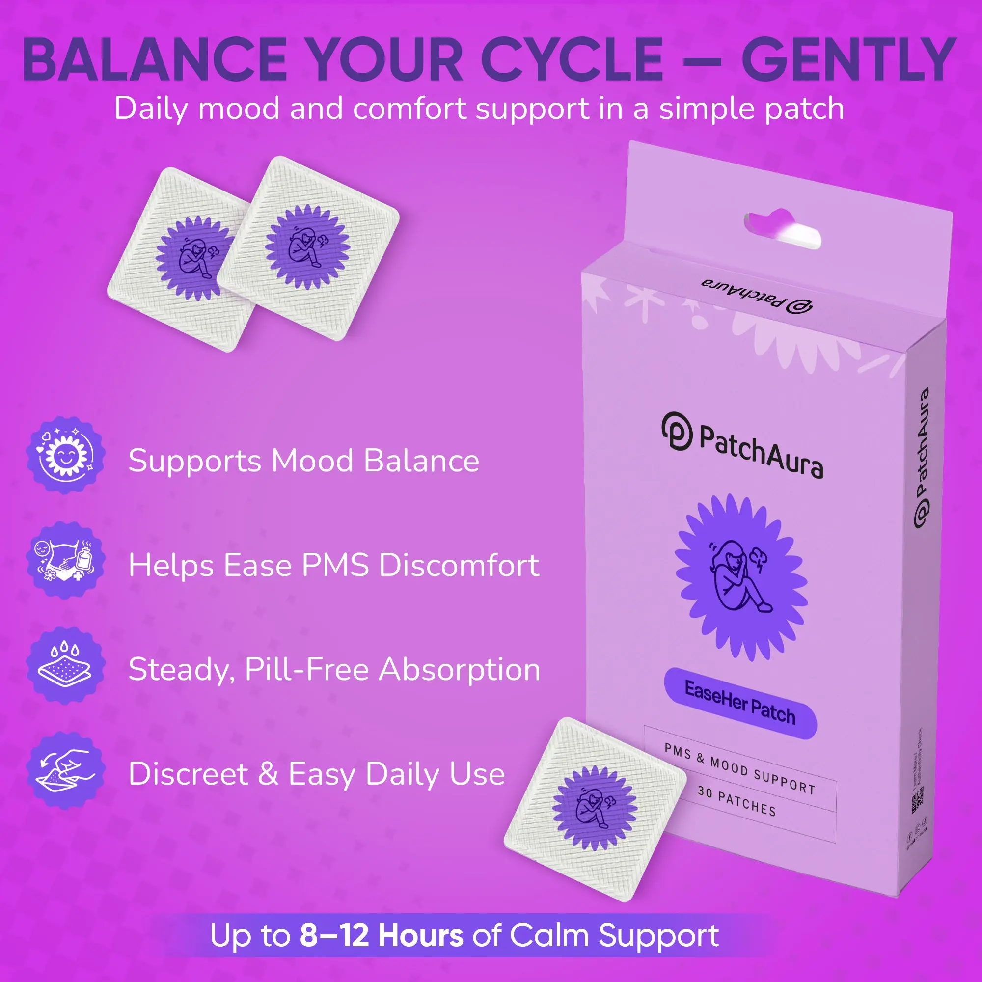 EaseHer is the ultimate comfort patch designed to help balance hormones, calm cramps, and smooth mood swings—all without pills or messy supplements.