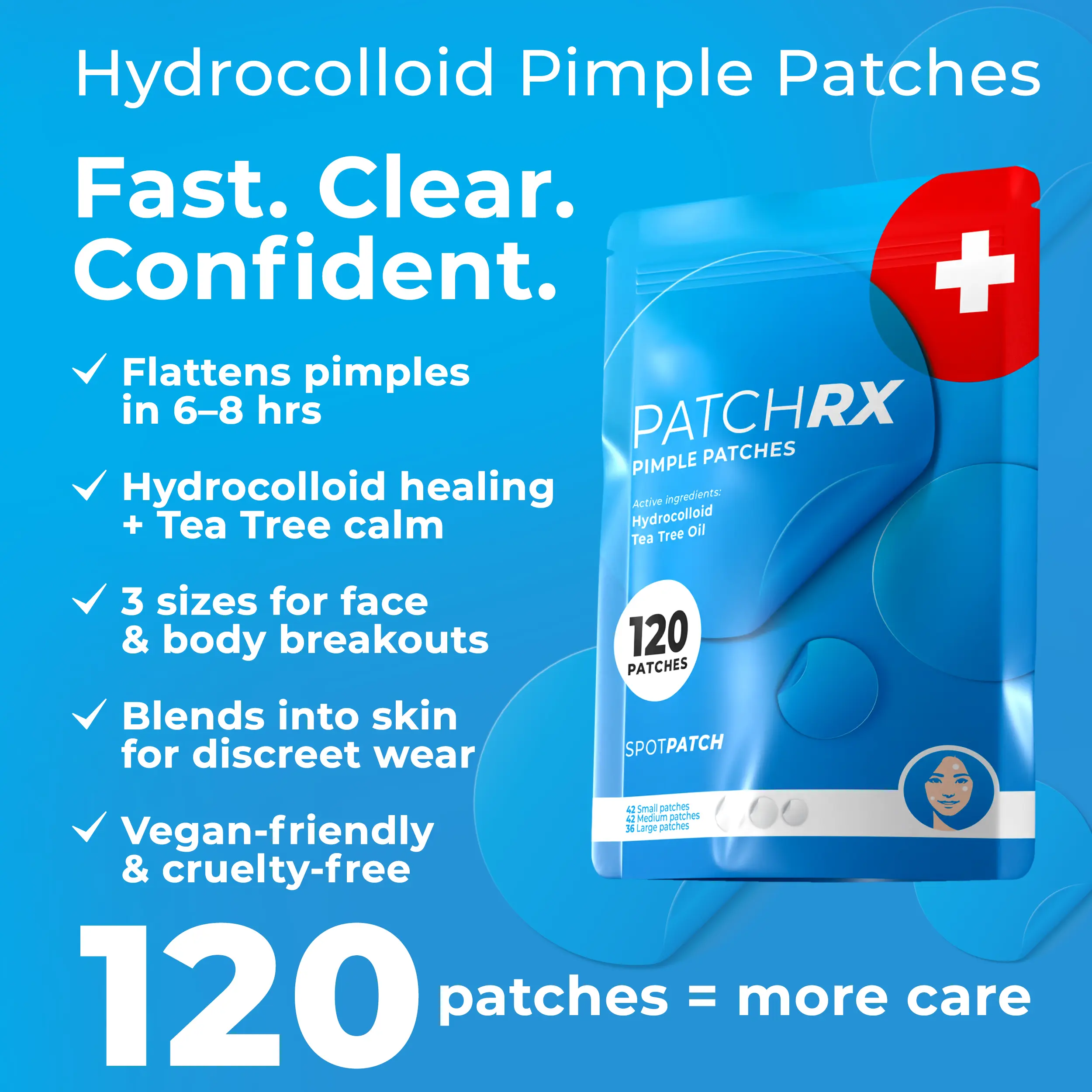 ·Surface zits? Tea Tree Patches absorb and heal fast.