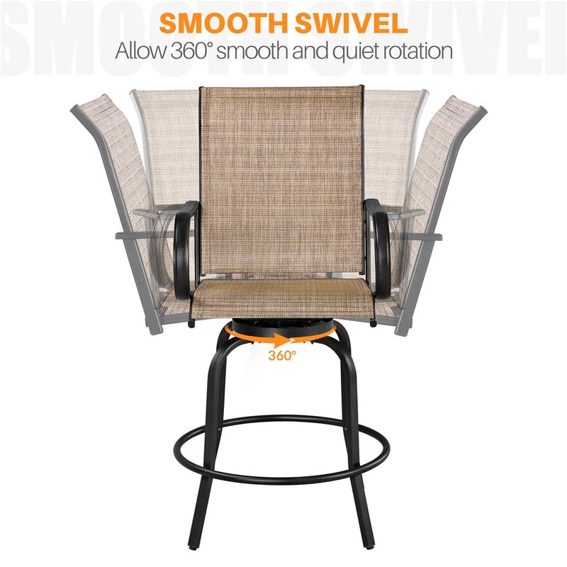 ·Smooth 360° Rotary: This 360° rotary seat patio bistro stool is specifically crafted to facilitate comfortable socializing, boasting a qualified mechanism for easy and secure swiveling, making you experience seamless conversations with your pals